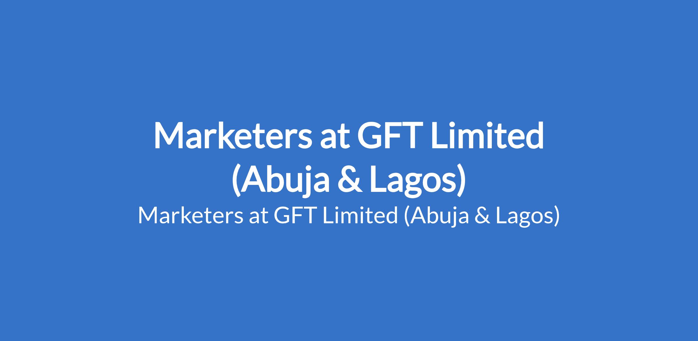 Marketers at GFT Limited (Abuja & Lagos)