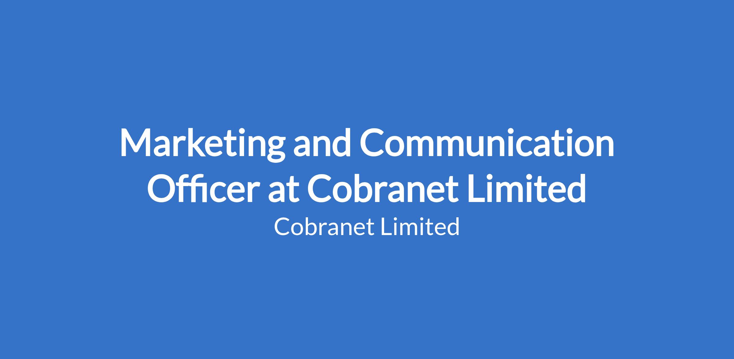 Minimum of 5 years Cognate Experience as a Marketing and Communication Officer is a MUST. Experience in an ISP is an added advantage.