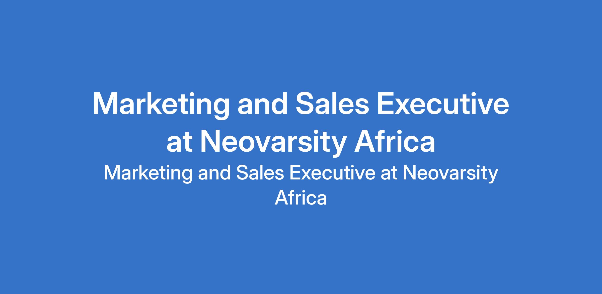 Neovarsity Africa is recruiting to fill the position of: Marketing and Sales Executive. The position is located in Lagos State. Interested candidates should possess a Bachelors degree in Marketing, Business Administration, Sales, Mass Communication, or a related field with 13 years experience in marketing, sales, or business development.
