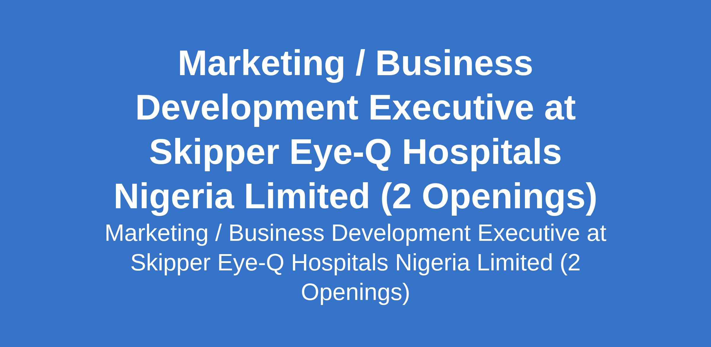 Skipper Eye-Q Hospitals Nigeria Limited is recruiting to fill the position of: Marketing / Business Development Executive. The position is located in Asokoro and Gwarinpa, Abuja (FCT). Interested candidates should possess a Bachelors degree in Marketing, Business Administration, or Healthcare Management with 2 - 5 years of proven experience in healthcare marketing, hospital sales, or a similar business development role.