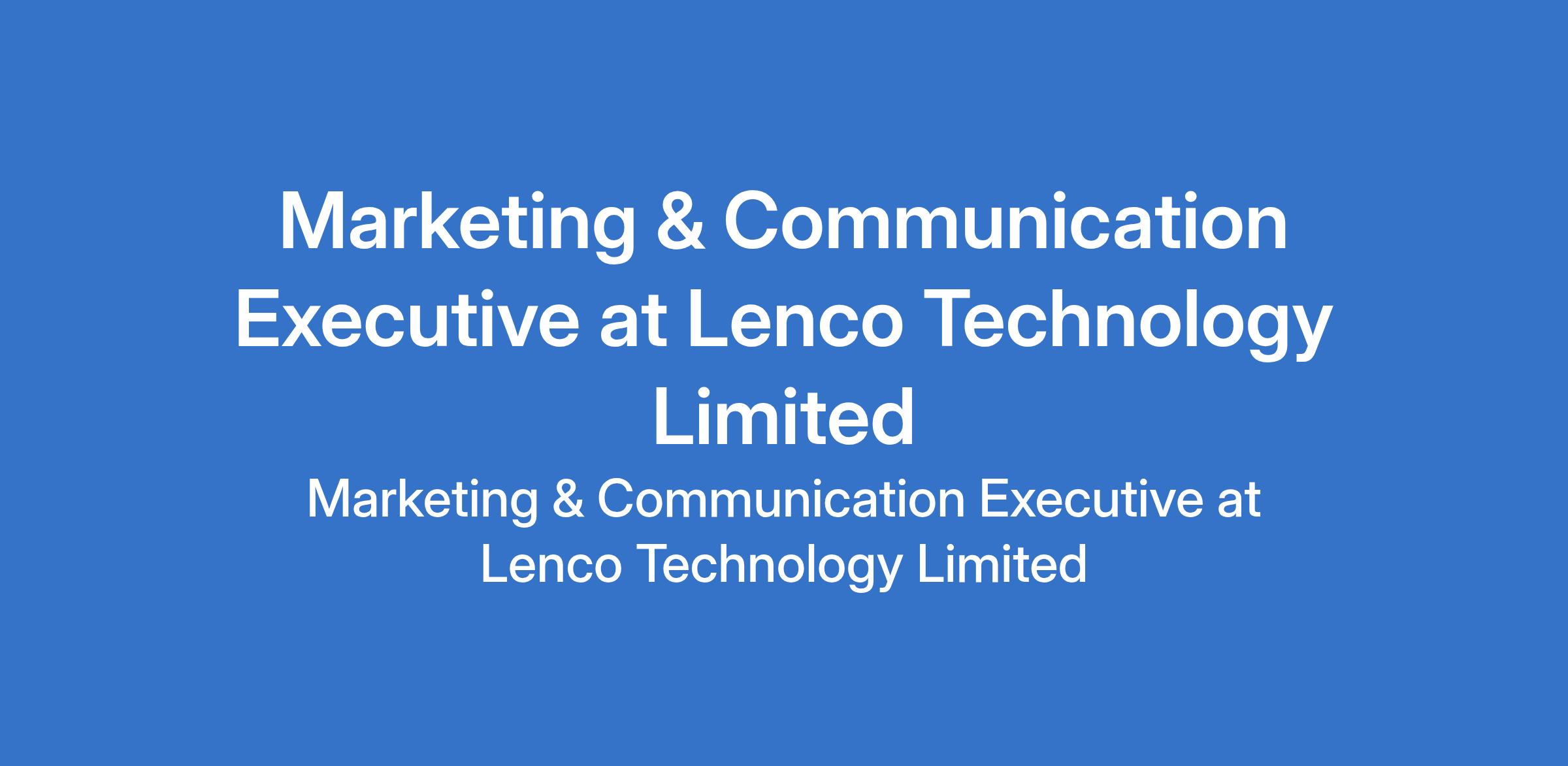 Lenco Technology Limited is recruiting to fill the position of: Marketing & Communication Executive. The position is located in Ikeja, Lagos State. Interested candidates should possess a Bachelors Degree in Marketing, Advertising, Communication or related fields with 2 - 4 years of experience as a Marketing & Communication Executive or related fields.