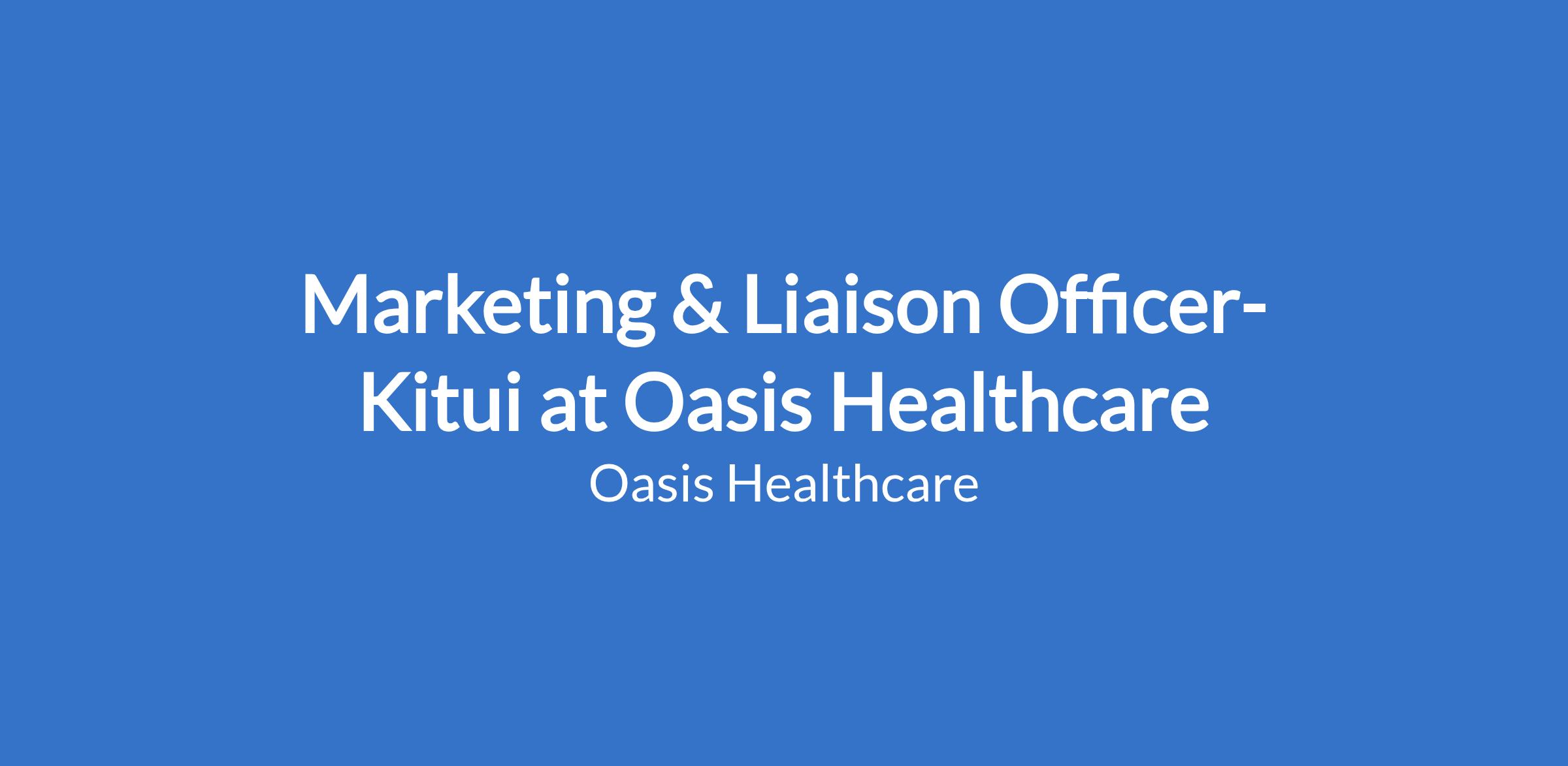 Marketing & Liaison Officer- Kitui at Oasis Healthcare