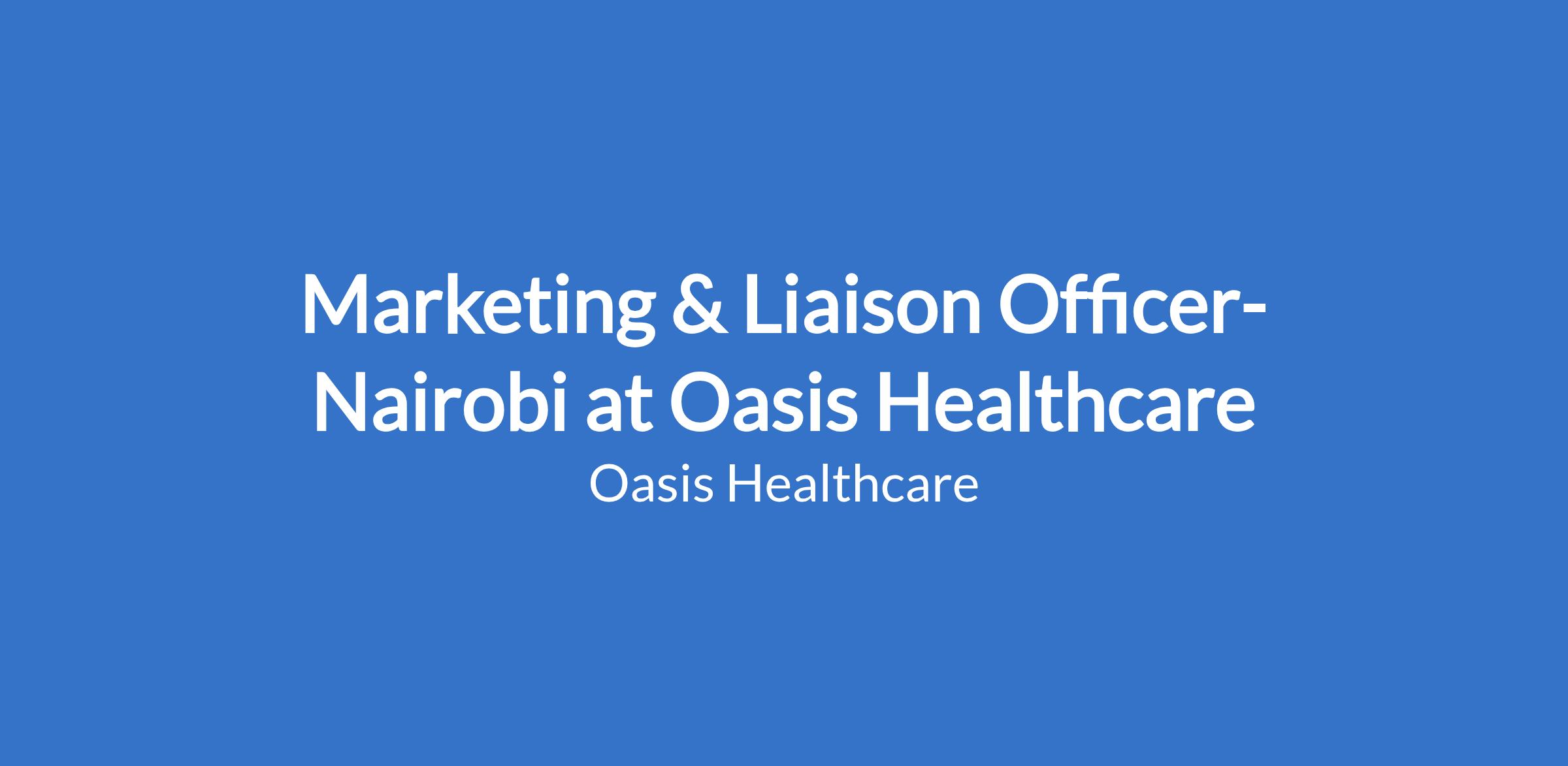 Marketing & Liaison Officer- Nairobi at Oasis Healthcare
