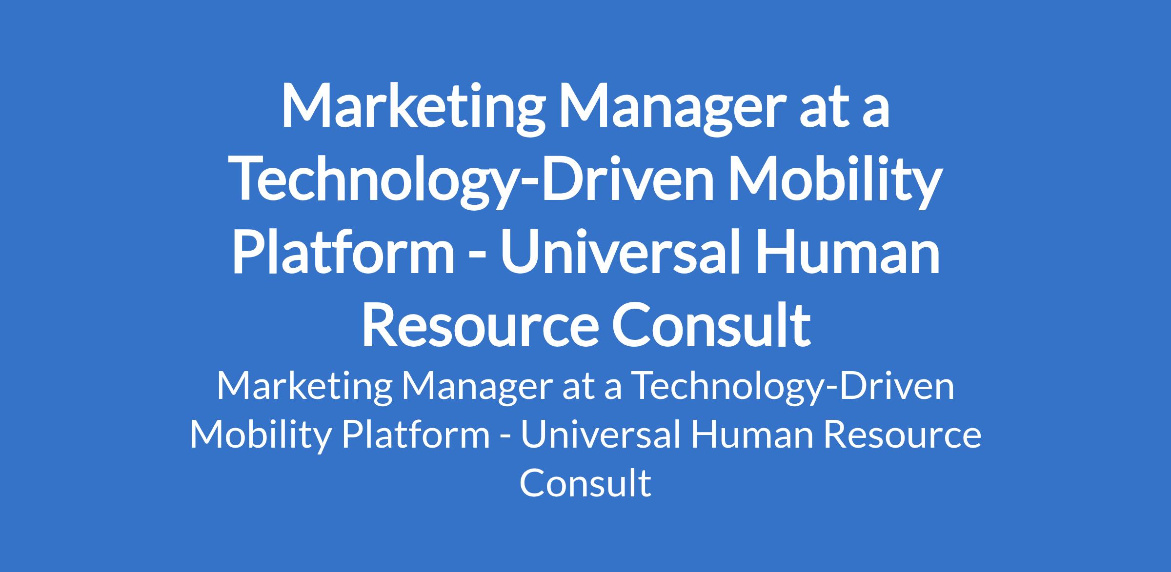 Universal Human Resource Consult - Our client, a technology-driven mobility platform is recruiting to fill the position of: Marketing Manager. The position is located in Abuja (FCT). Salary: N300,000 monthly. Interested candidates should possess relevant qulifications with 3+ years experience in marketing, performance marketing, or similar roles.