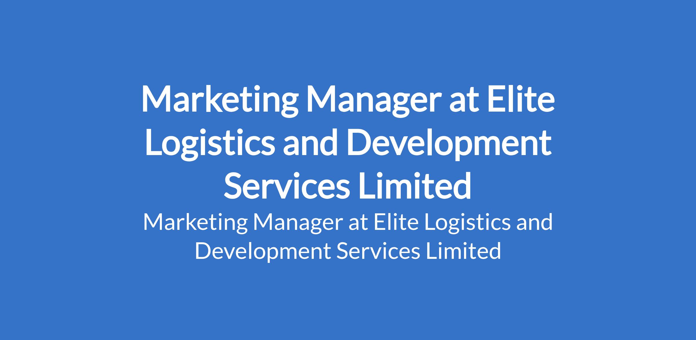 Elite Logistics and Development Services Limited is recruiting to fill the position of: Marketing Manager. The position is located in Lagos State. Salary: N100,000 - N150,000 per month. Interested candidates should possess a B.Sc / M.Sc Degree in Marketing or related fields.
