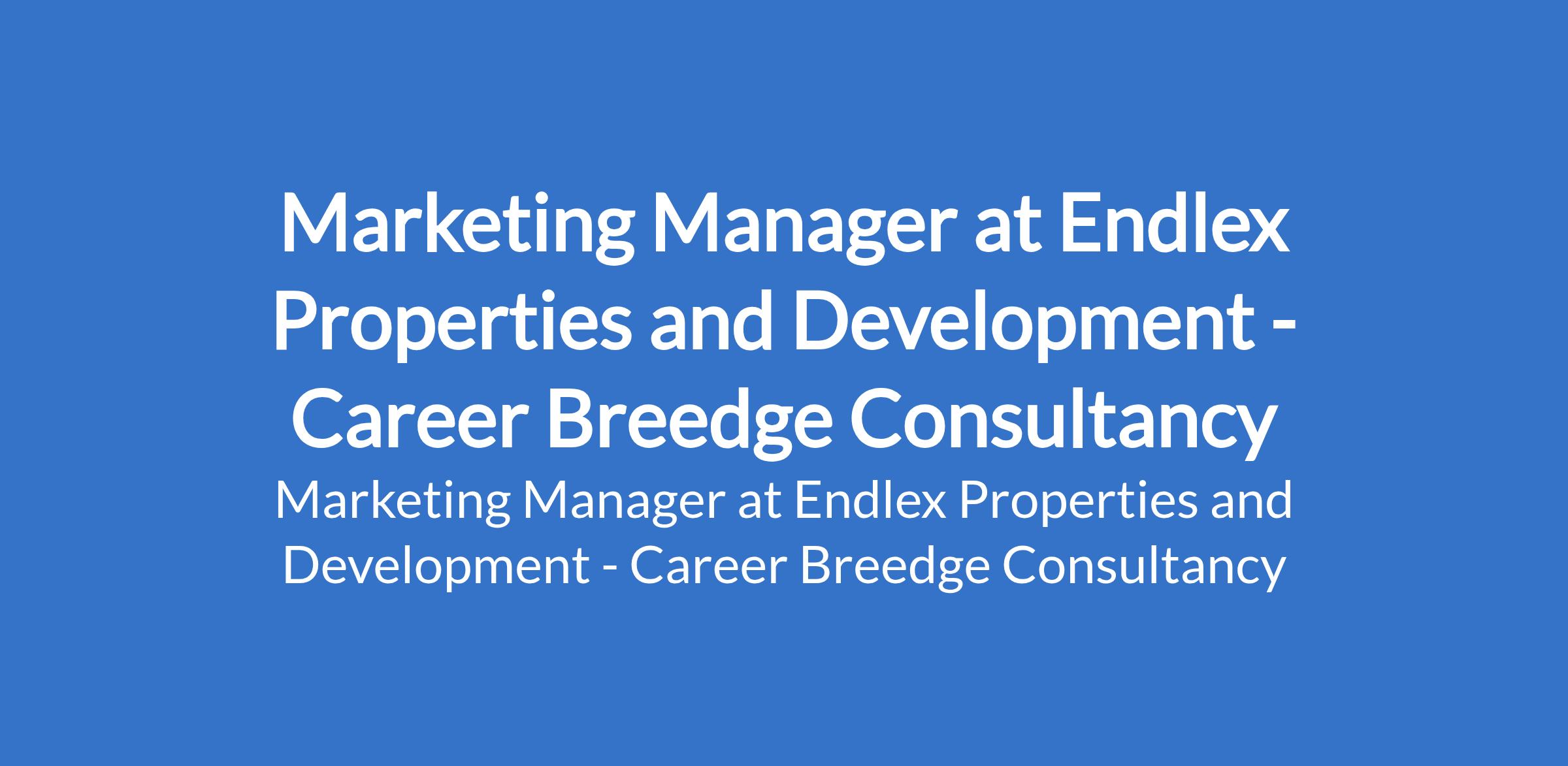 Career Breedge Consultancy Limited - Our client, Endlex Properties and Development is recruiting to fill the position of: Marketing Manager. The position is located in Port Harcourt, Rivers State. Interested candidates should possess minimum of an HND or BSc Degree in Marketing, Business Administration, Economics, or a related discipline with 35 years proven experience in marketing and business development, preferably within real estate, financial services, or related industries.