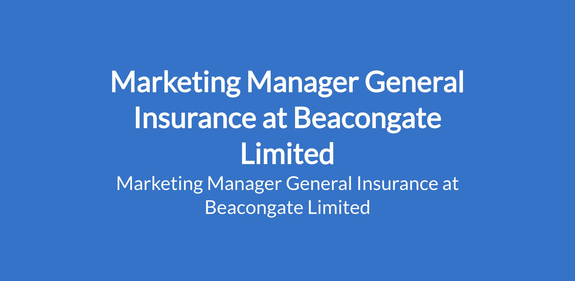 Beacongate Limited is recruiting to fill the position of: Marketing Manager General Insurance. The position is located in Lagos Island, Lagos State. Interested candidates should possess a Bachelors Degree in Business Administration, Marketing, Insurance, Finance, or related field with 710 years experience in insurance sales or business development, preferably in general insurance.
