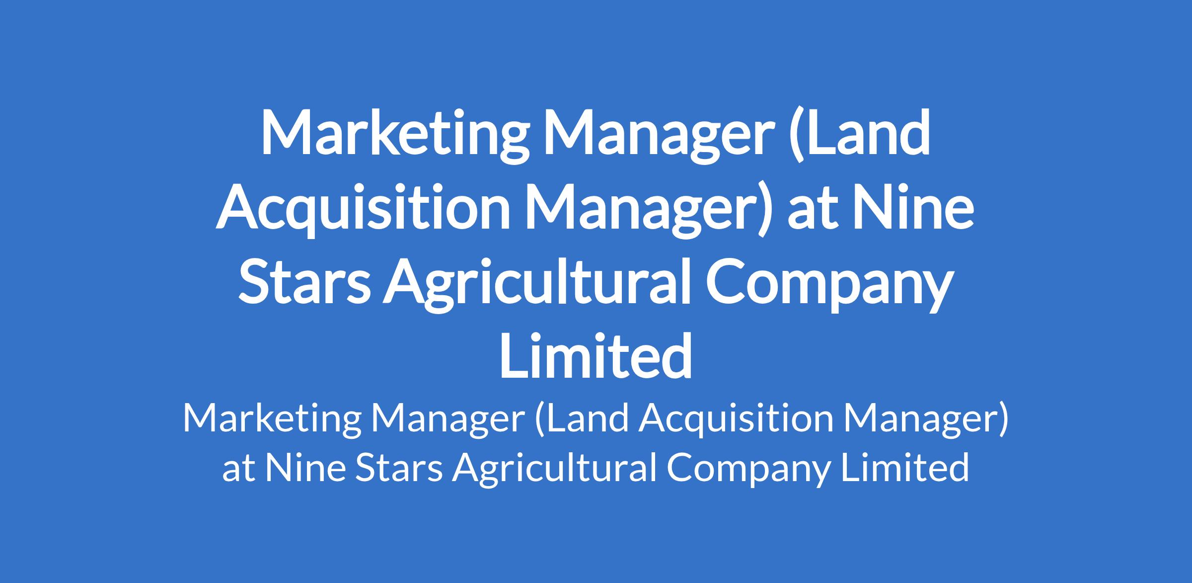 Nine Stars Agricultural Company Limited is recruiting to fill the position of: Marketing Manager (Land Acquisition Manager). The position is located in Ogere-Remo, Ogun State. Salary: N250,000 - N500,000 monthly. Interested candidates should possess a Bachelors Degree in Marketing, Estate Management, Business Administration, or related field with 9-15 years experience.