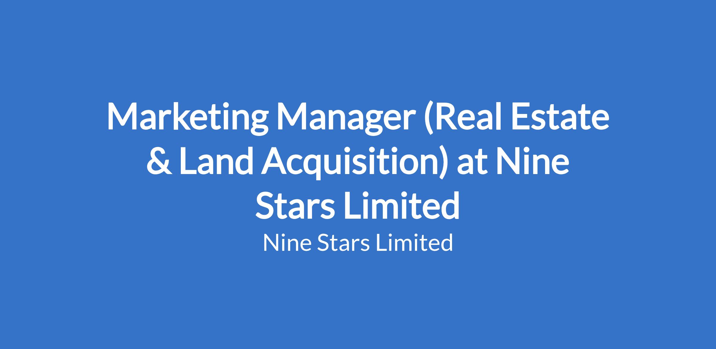 Marketing Manager (Real Estate & Land Acquisition) at Nine Stars Limited