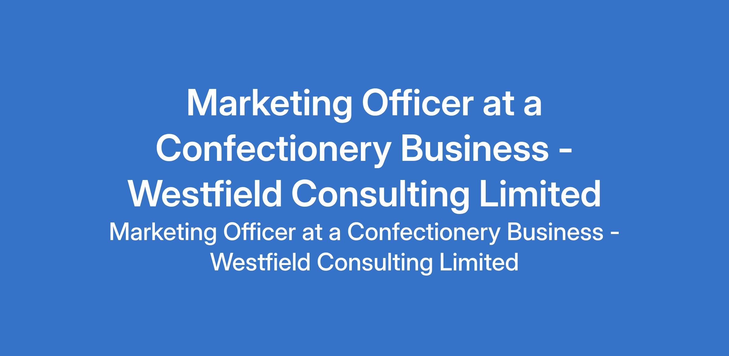 Westfield Consulting Limited - Our client in the Confectionery business is recruiting to fill the position of: Marketing Officer. The position is located in Lagos State. Salary: N100,000 monthly. Interested candidates should possess a BSc / HND / ND / NCE qualification in any field with 2 - 3 years of experience in Marketing/Relationship Management.