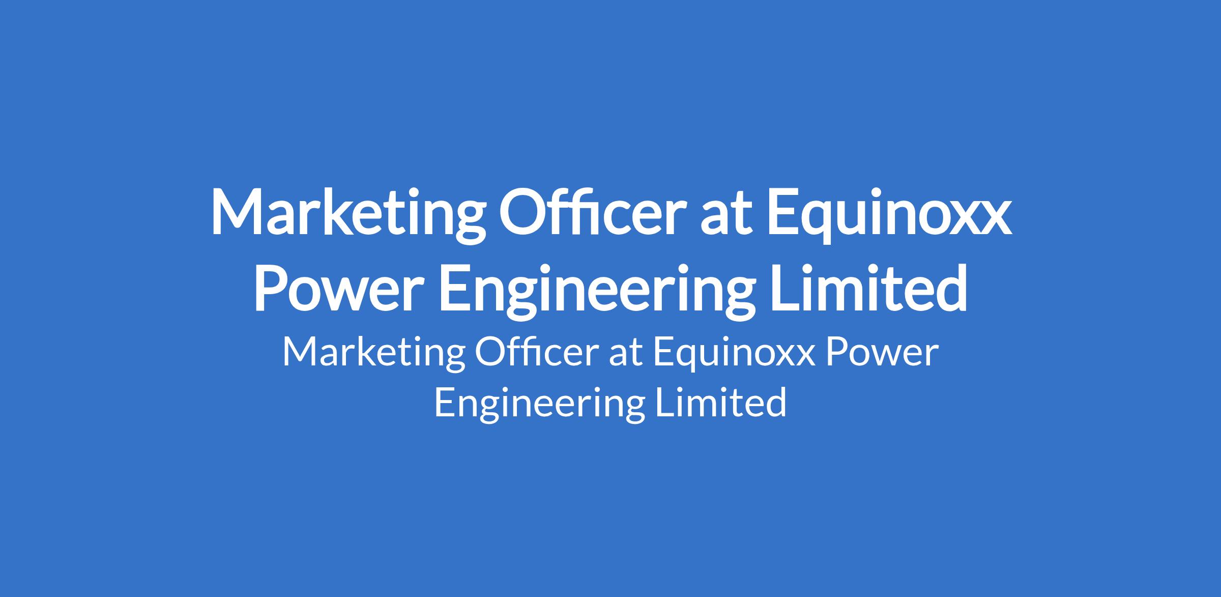 Equinoxx Power Engineering Limited is recruiting to fill the position of: Marketing Officer. The position is located in Ikeja, Lagos State. Salary: N150,000 - N300,000 / month. Interested candidates should possess relevant qualifications with experience.