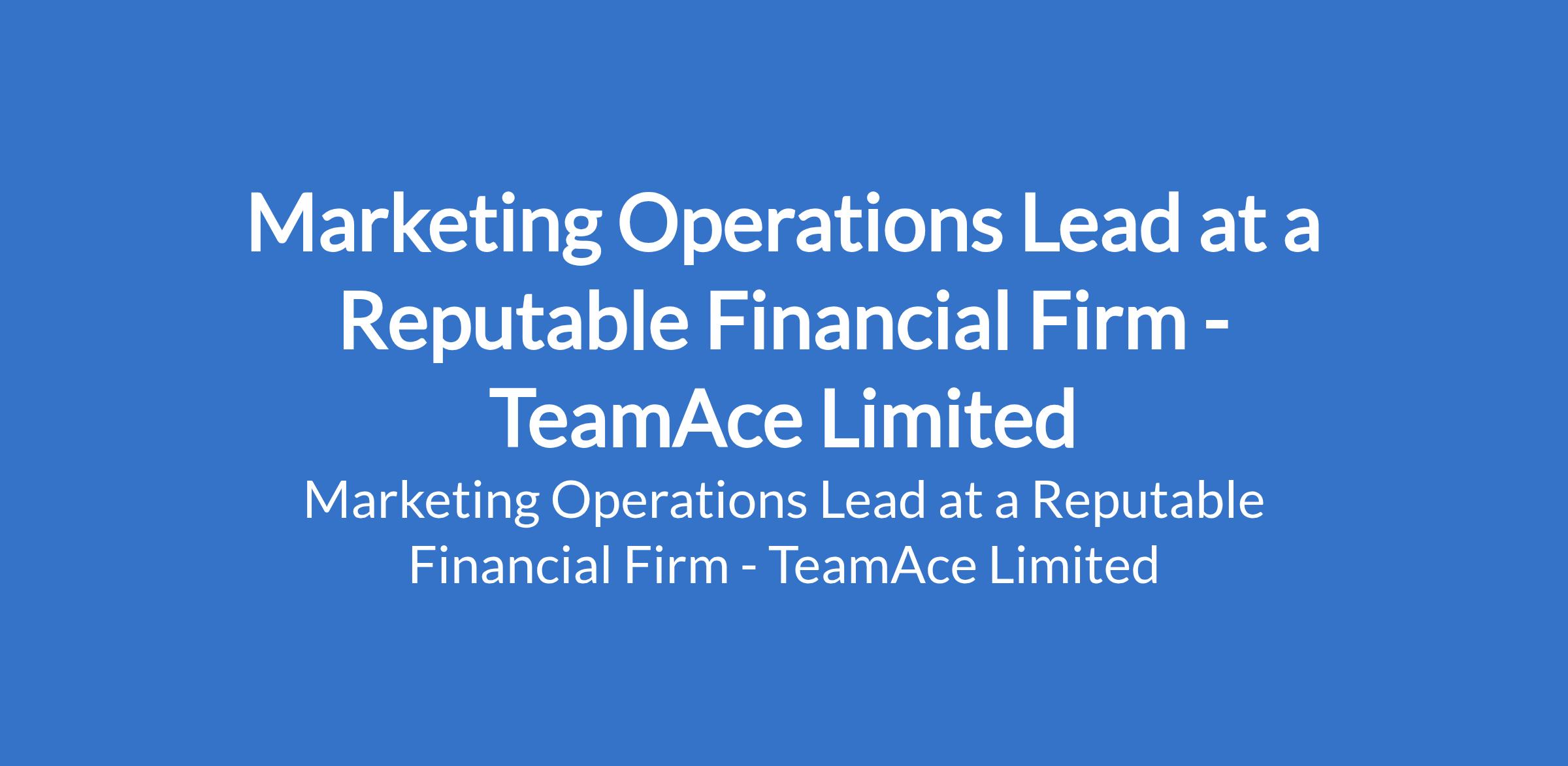 TeamAce Limited - Our client, a reputable organization in the Fintech sector is recruiting to fill the position of: Marketing Operations Lead. The position is located in Lagos State. Salary: N500,000 - N800,000 monthly. Interested candidates should possess a Bachelors Degree in Marketing, Business Administration, or related field with 35 years experience in marketing operations, growth operations, or program management roles.