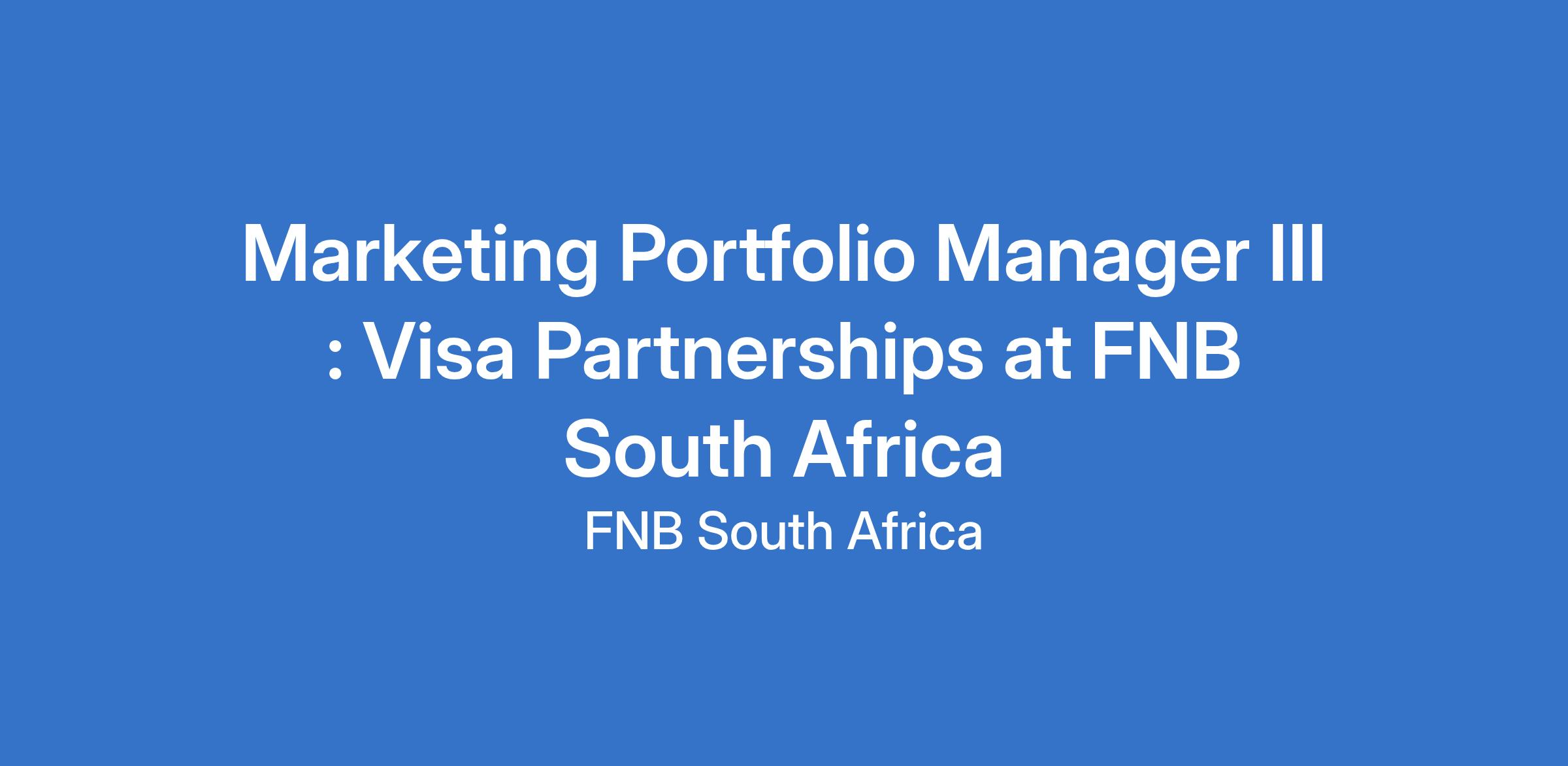 Marketing Portfolio Manager III : Visa Partnerships at FNB South Africa