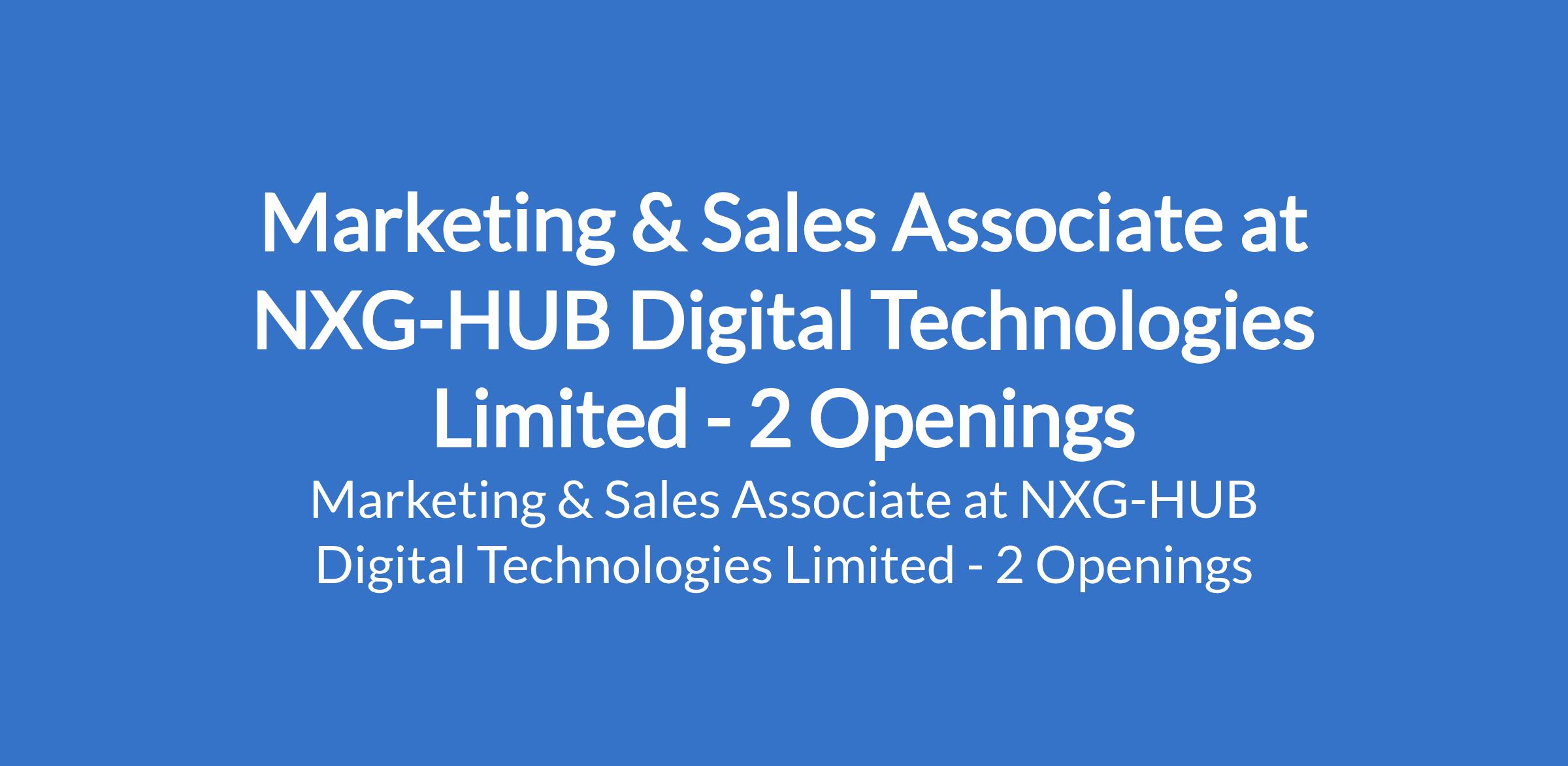 NXG-HUB Digital Technologies Limited is recruiting to fill the position of: Marketing & Sales Associate. The position is located in Sango Ota & Alakuko, Ogun State. Interested candidates should possess relevant qualifications with 0 2 years experience in marketing and sales.