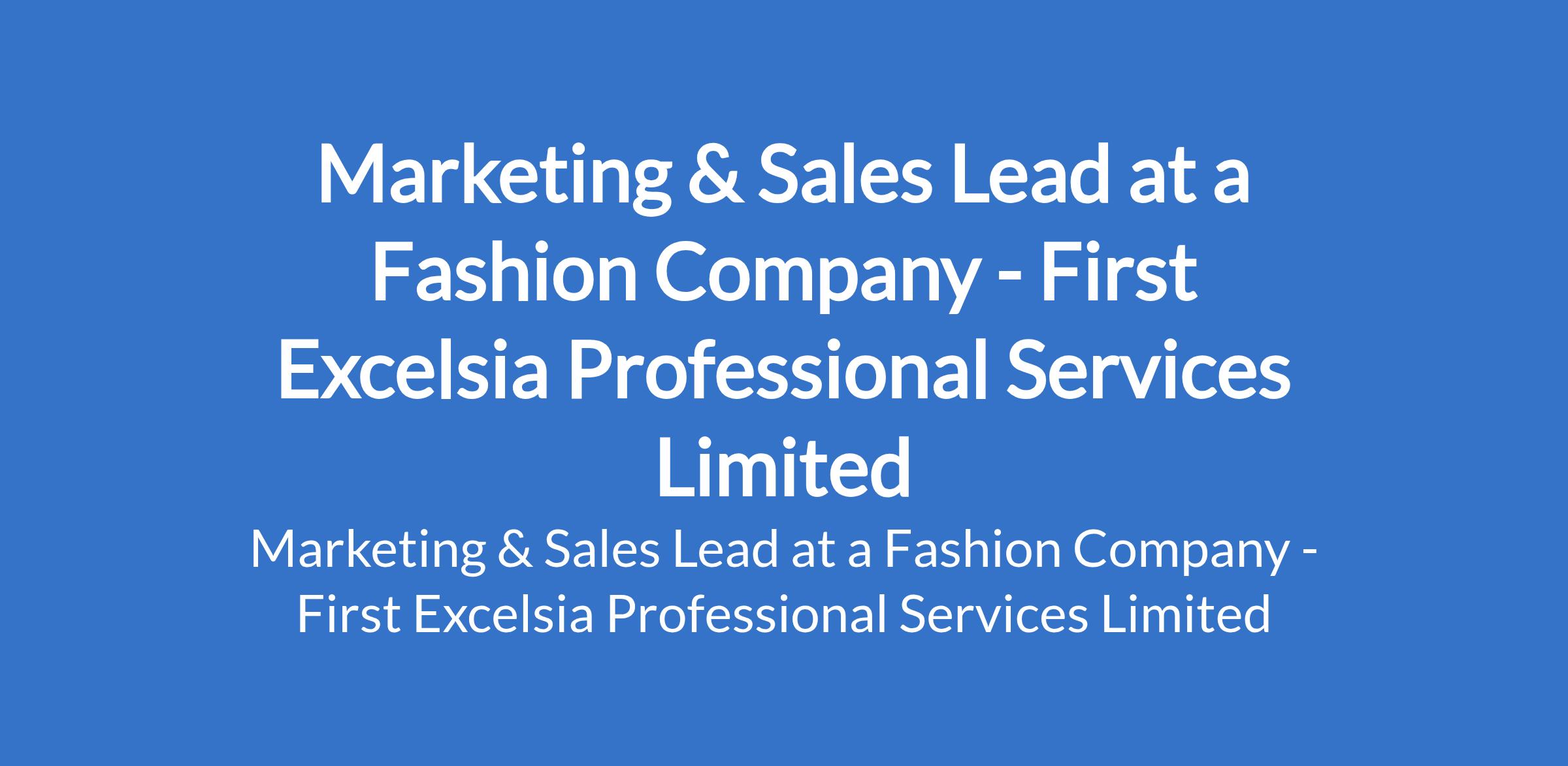 First Excelsia Professional Services Limited - Our client in the Fashion industry is recruiting to fill the position of: Marketing & Sales Lead. The position is located in Surulere, Lagos State. Salary: N2,400,000 annually. Interested candidates should possess minimum of a B.Sc. or HND in Marketing, Business Administration, Communications, or a related field with a minimum of 2 years proven experience in sales and marketing with measurable results.
