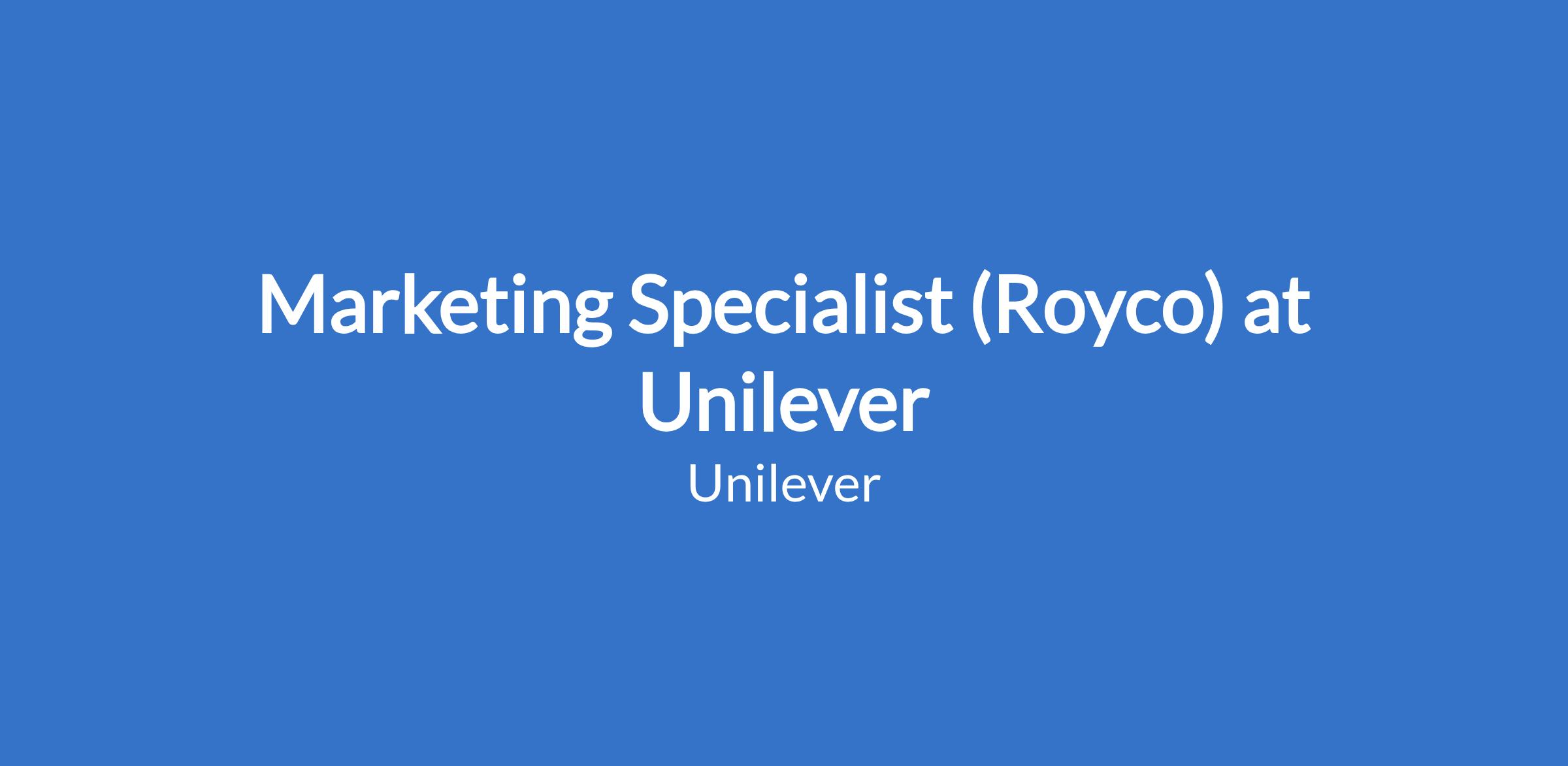 Marketing Specialist (Royco) at Unilever