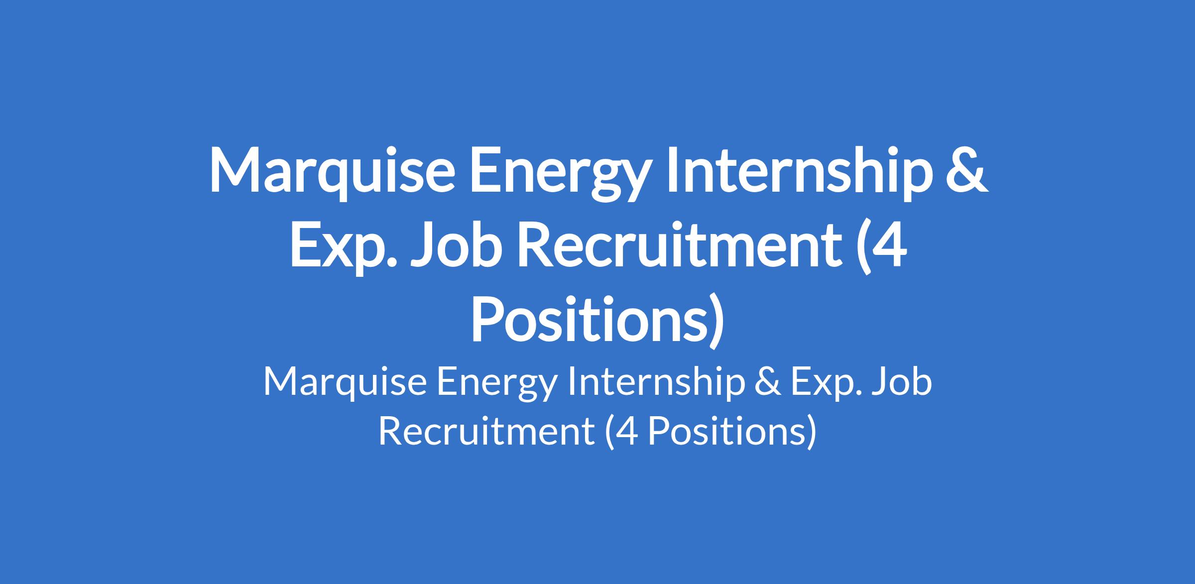 Marquise Energy Internship & Exp. Job Recruitment (4 Positions)
