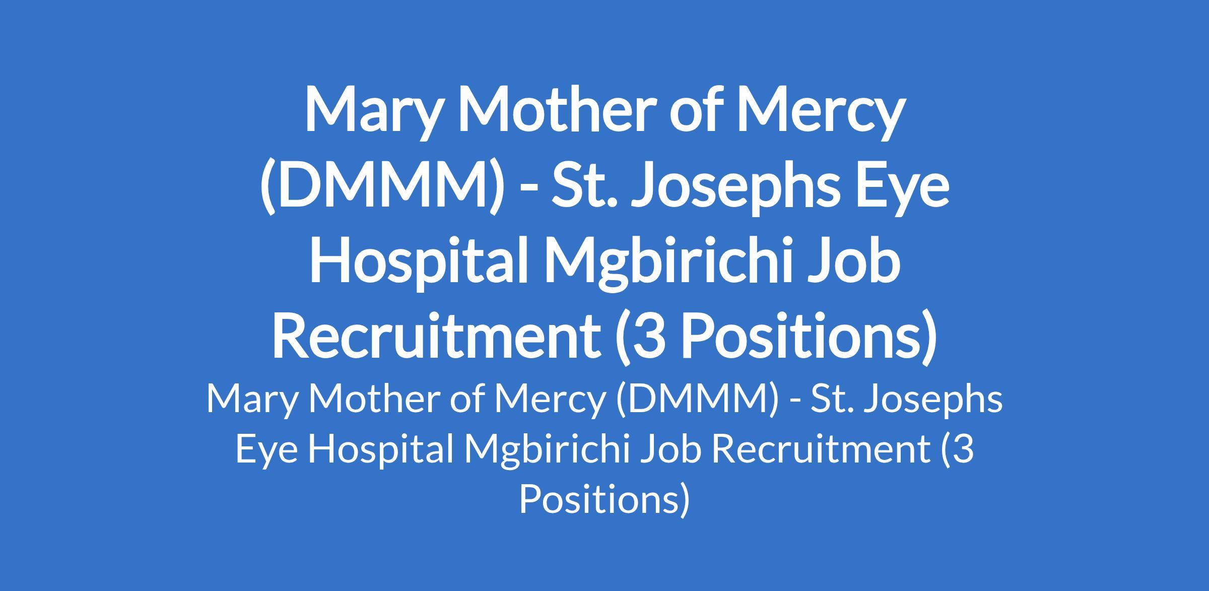 Mary Mother of Mercy (DMMM) - St. Josephs Eye Hospital Mgbirichi Job Recruitment (3 Positions)
