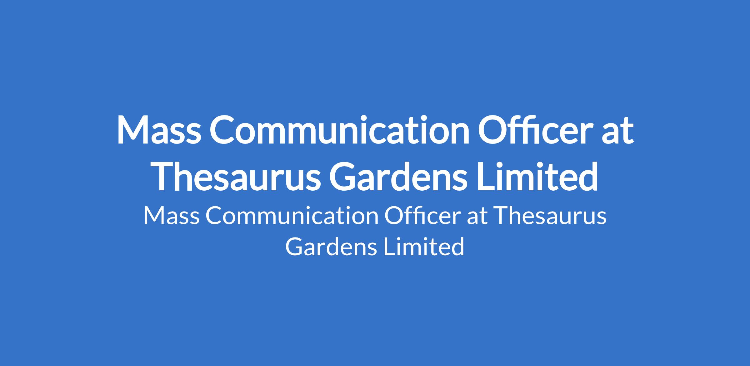 Thesaurus Gardens Limited is recruiting to fill the position of: Mass Communication Officer. The position is located in Sangotedo, Lagos State. Interested candidates should possess a Bachelor's Degree in Mass Communication, Journalism, Public Relations, or related field with 12 years relevant experience.