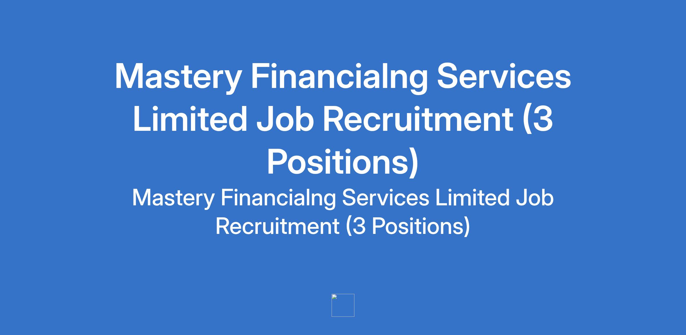 Mastery Financialng Services Limited Job Recruitment (3 Positions)