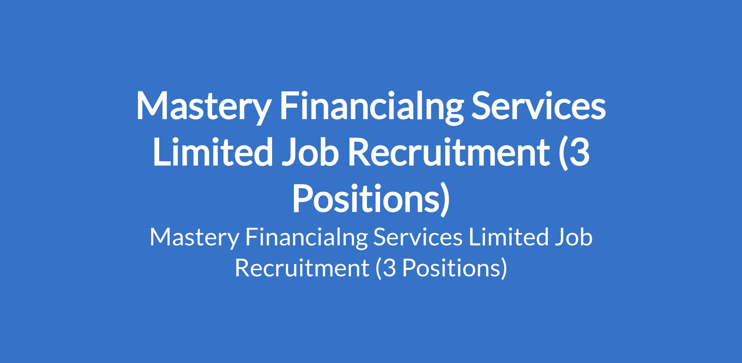 Mastery Financialng Services Limited Job Recruitment (3 Positions)