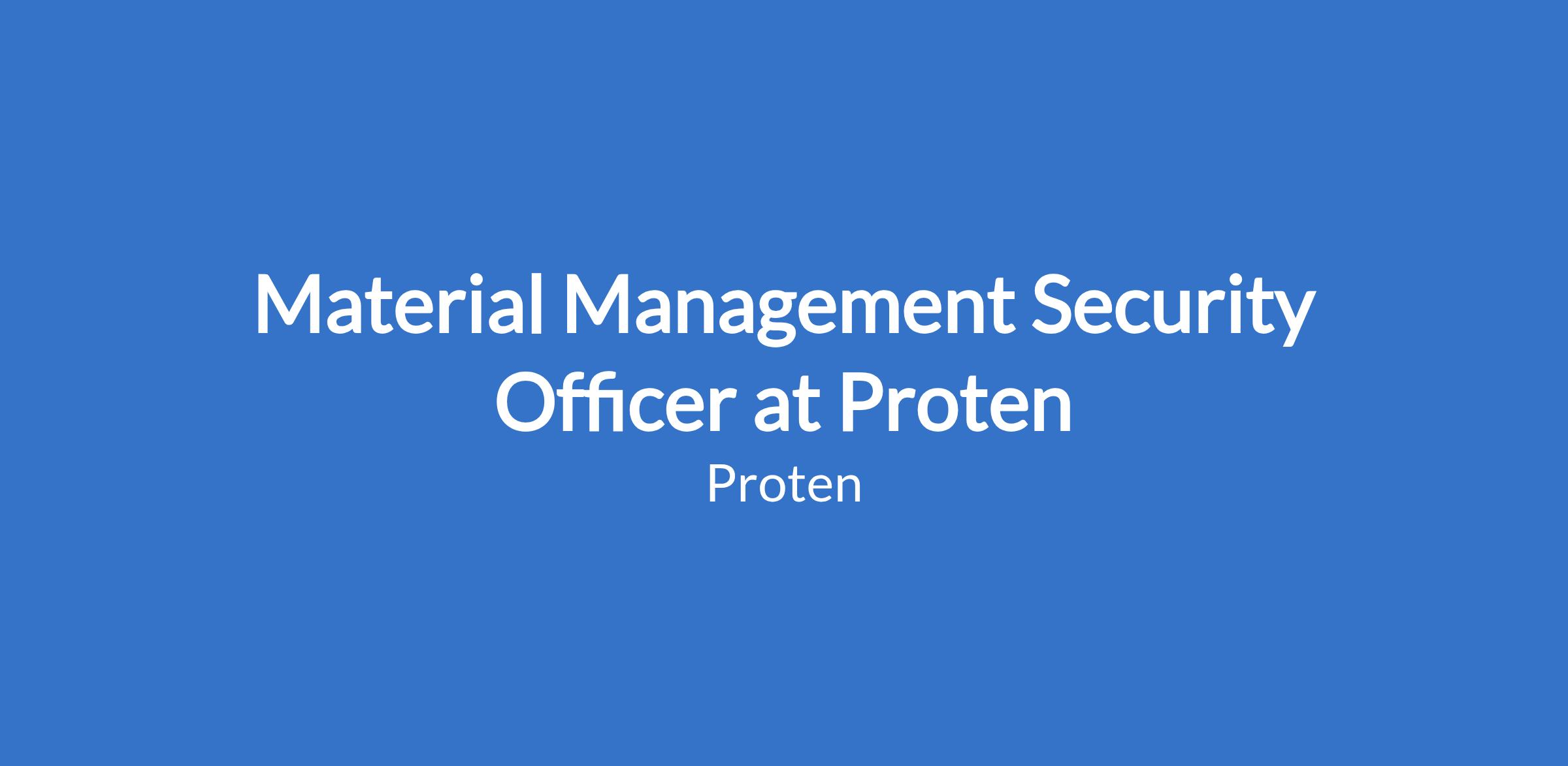 Material Management Security Officer at Proten