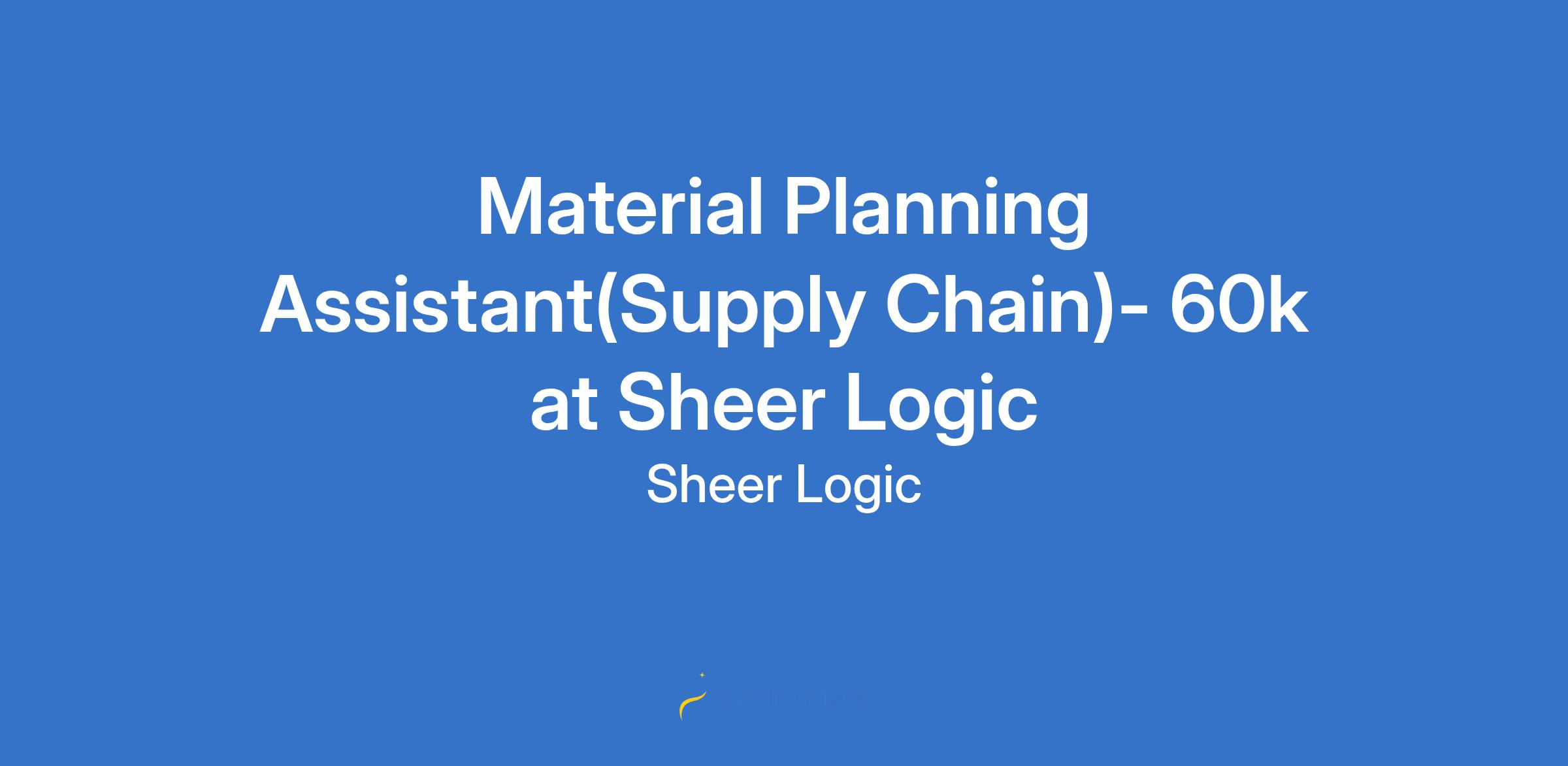 Material Planning Assistant(Supply Chain)- 60k at Sheer Logic