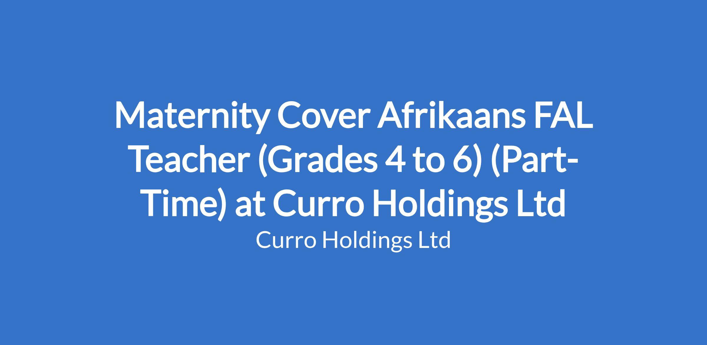 Maternity Cover Afrikaans FAL Teacher (Grades 4 to 6) (Part-Time) at Curro Holdings Ltd