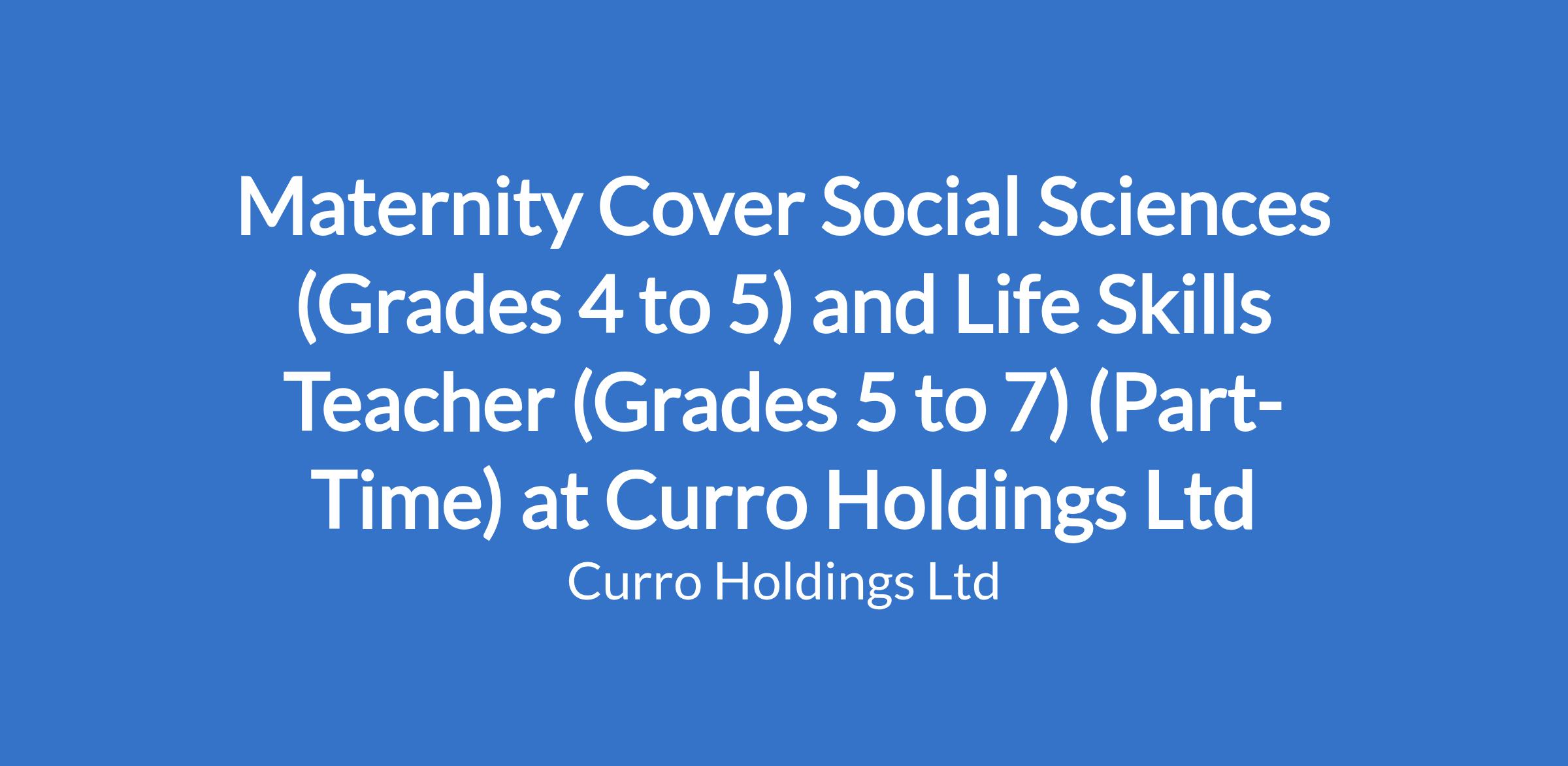 Maternity Cover Social Sciences (Grades 4 to 5) and Life Skills Teacher (Grades 5 to 7) (Part-Time) at Curro Holdings Ltd