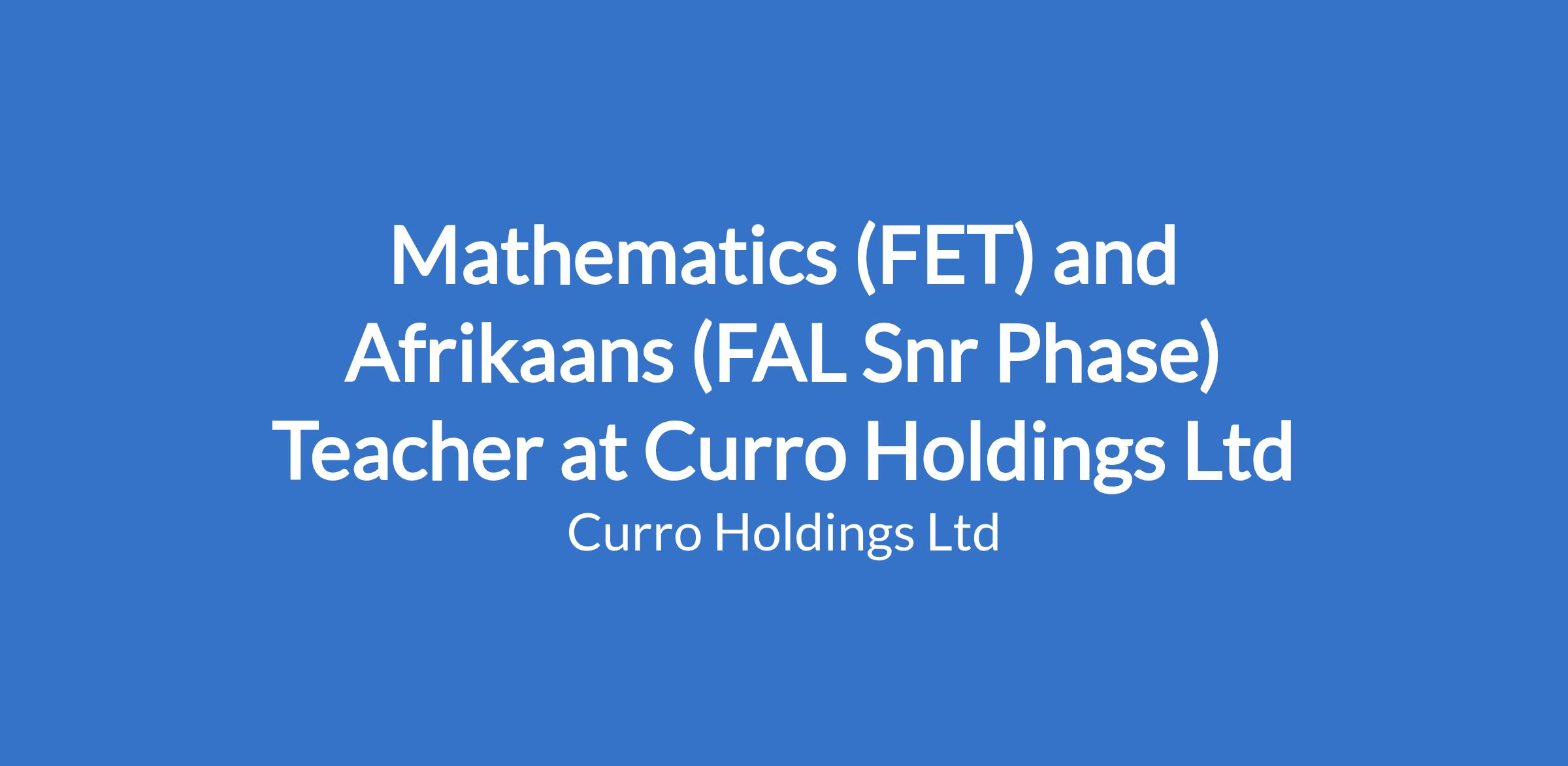 Mathematics (FET) and Afrikaans (FAL Snr Phase) Teacher at Curro Holdings Ltd