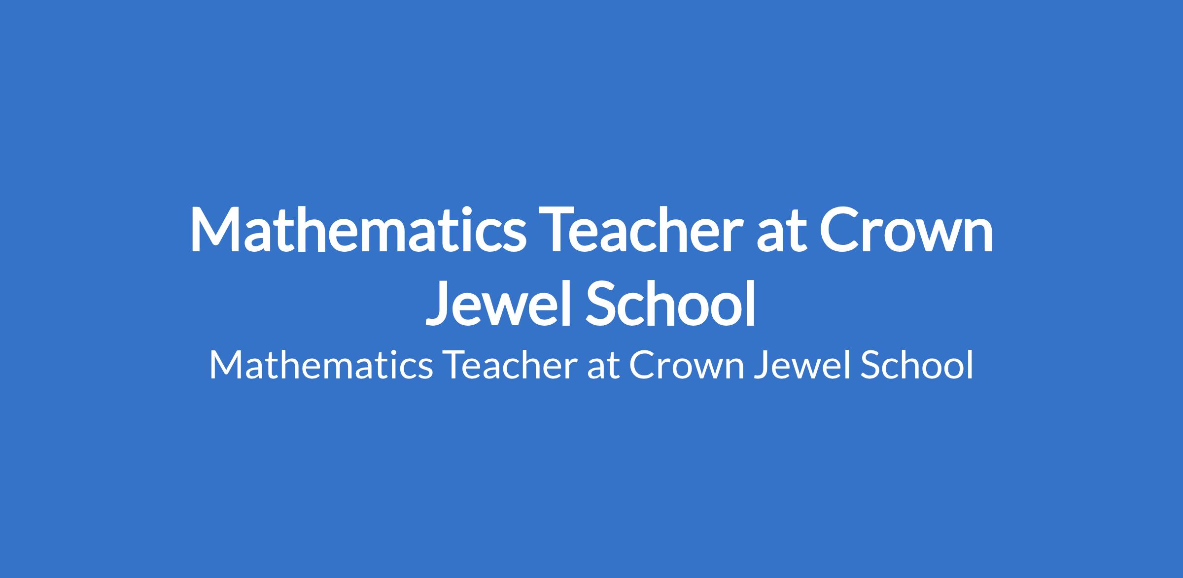 Mathematics Teacher at Crown Jewel School