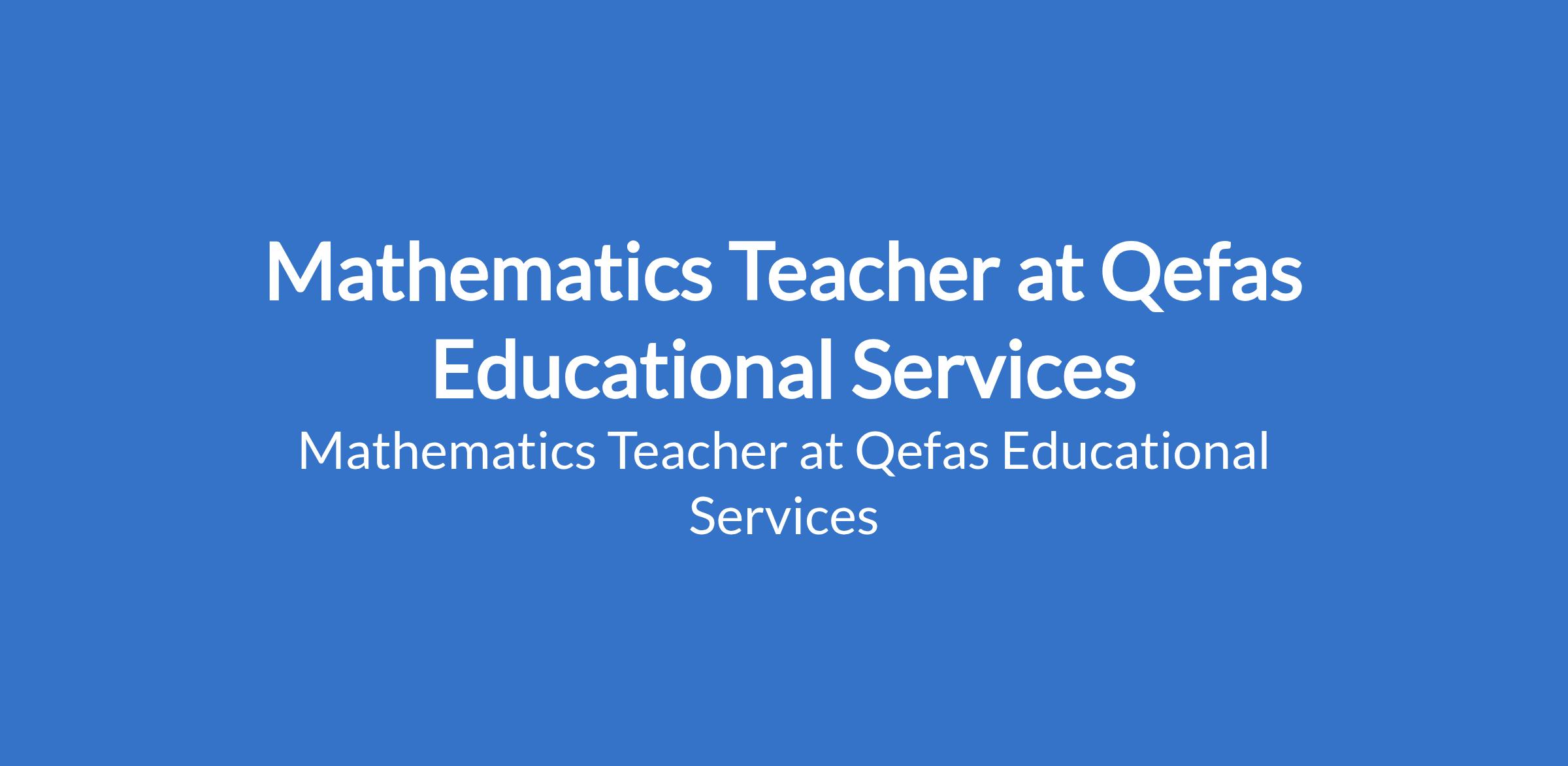 Qefas Educational Services is recruiting to fill the position of: Mathematics Teacher. The position is located in Lagos State. Salary: N100,000 - N200,000 / month. Interested candidates should possess a Bachelor's Degree, Masters or Higher in Mathematics or related field; teaching qualification/certification is preferred with proven experience teaching Mathematics at the secondary school level, colleges or university.