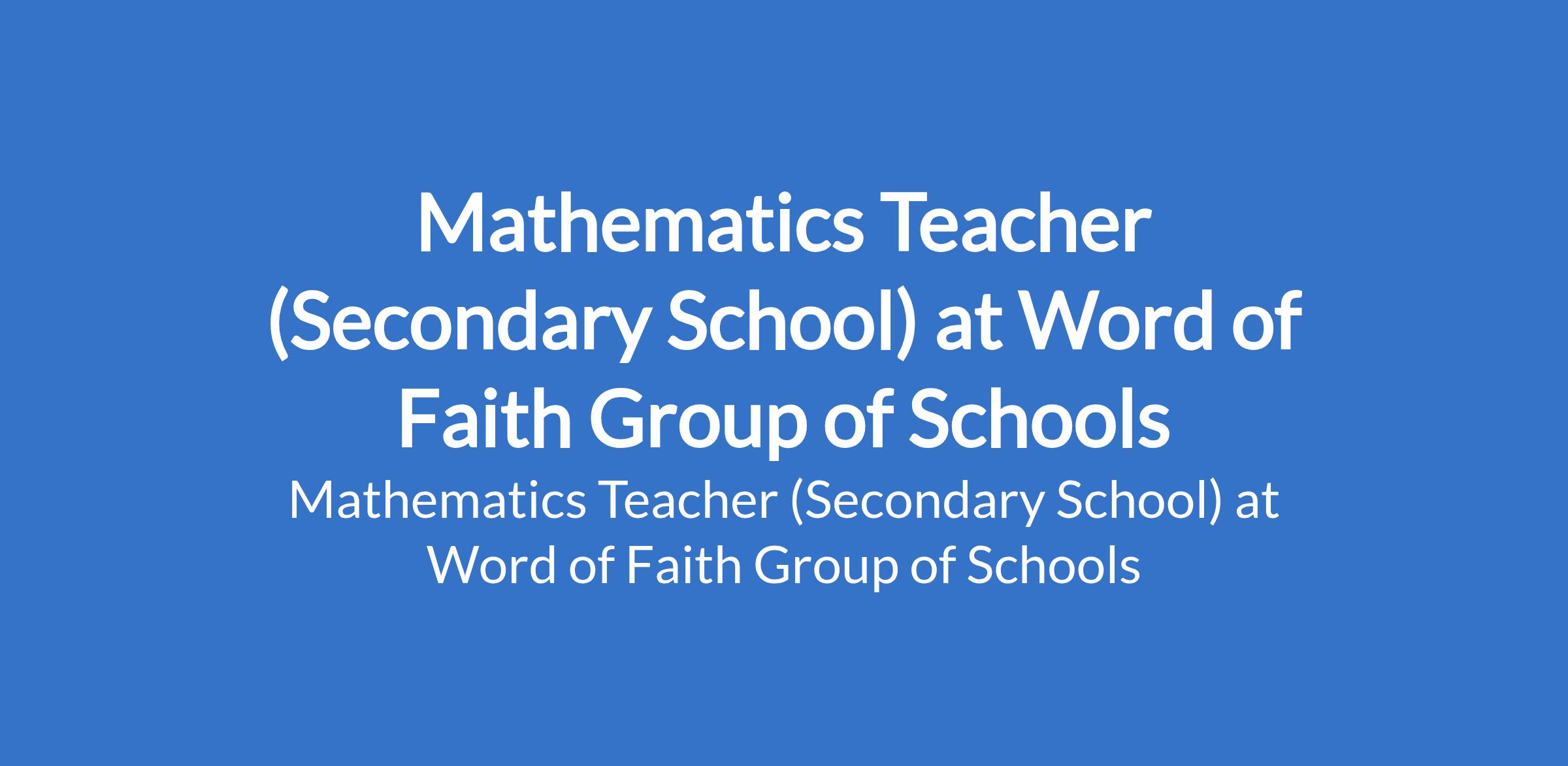 Word of Faith Group of Schools is recruiting to fill the position of: Mathematics Teacher (Secondary School). The position is located in Abuja. Interested candidates should possess a B.Ed or relevant qualification in Education and must be duly certified by TRCN.