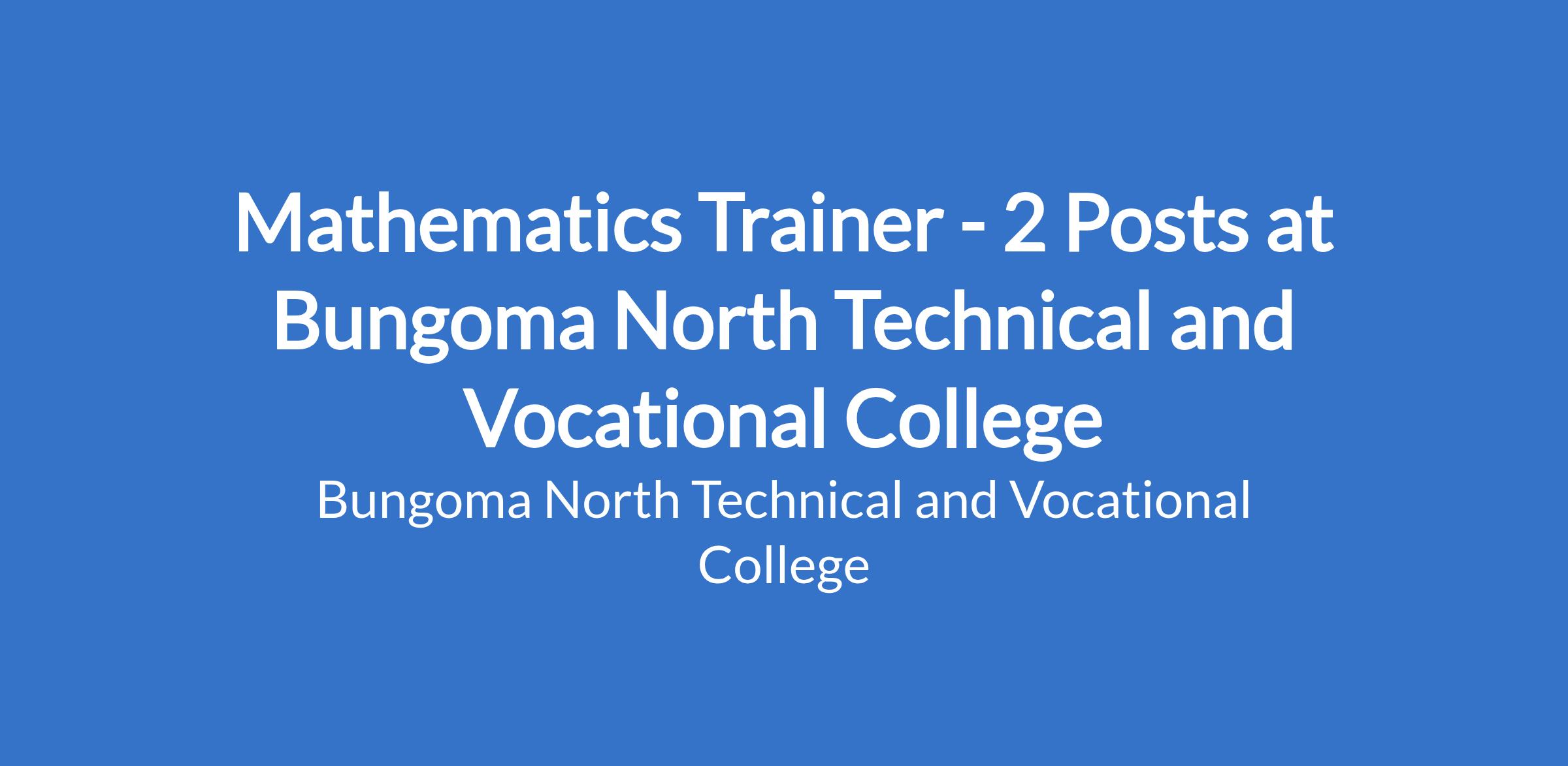 Mathematics Trainer - 2 Posts at Bungoma North Technical and Vocational College