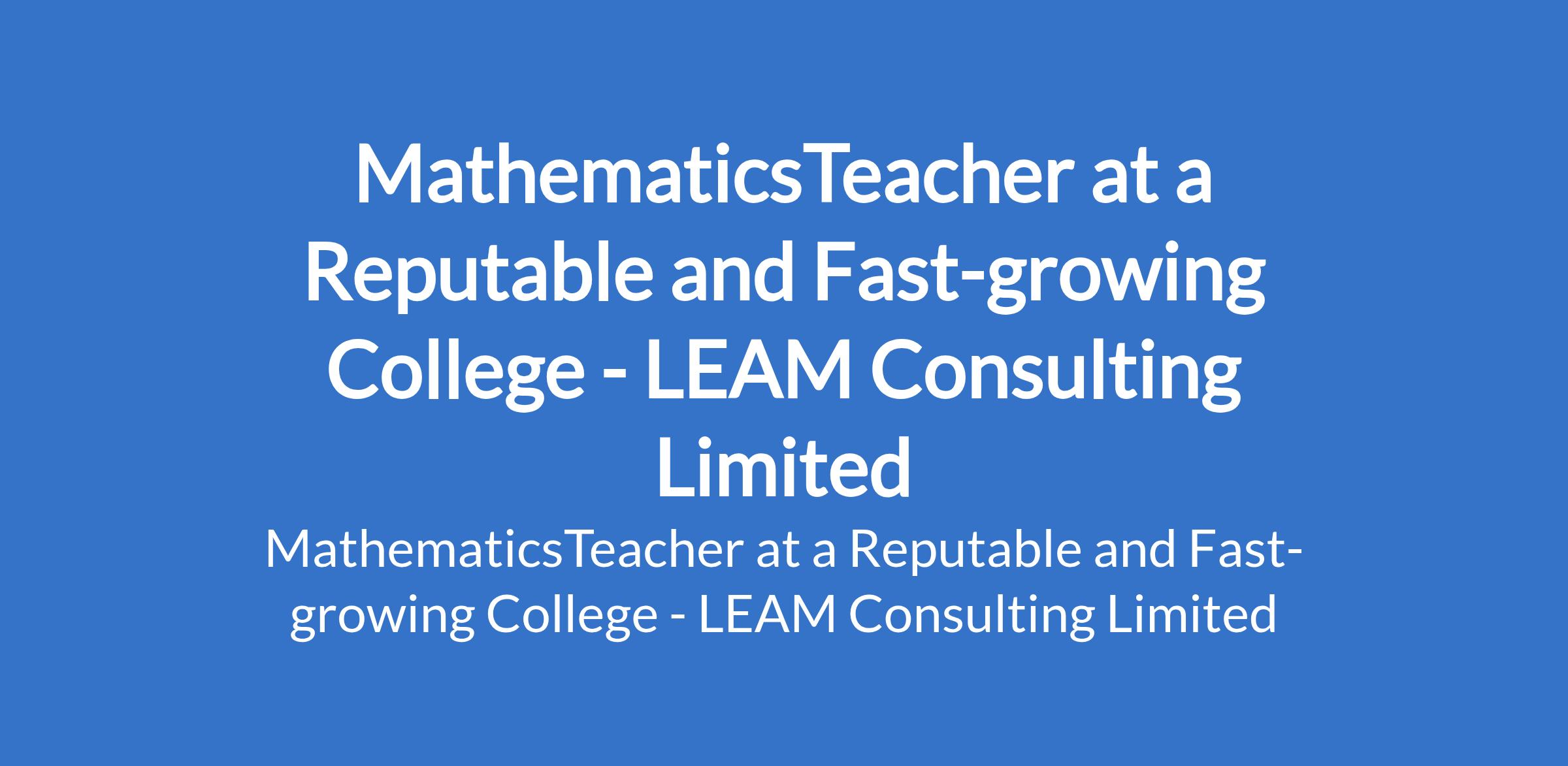 LEAM Consulting Limited - Our client, a reputable and fast-growing College is recruiting to fill the position of: MathematicsTeacher. The position is located in Akala Express way, Ibadan - Oyo State. Salary: N55,000 N60,000 per month. Interested candidates should possess relevant qualifications and must be dedicated, disciplined and committed to academic excellence and character development.