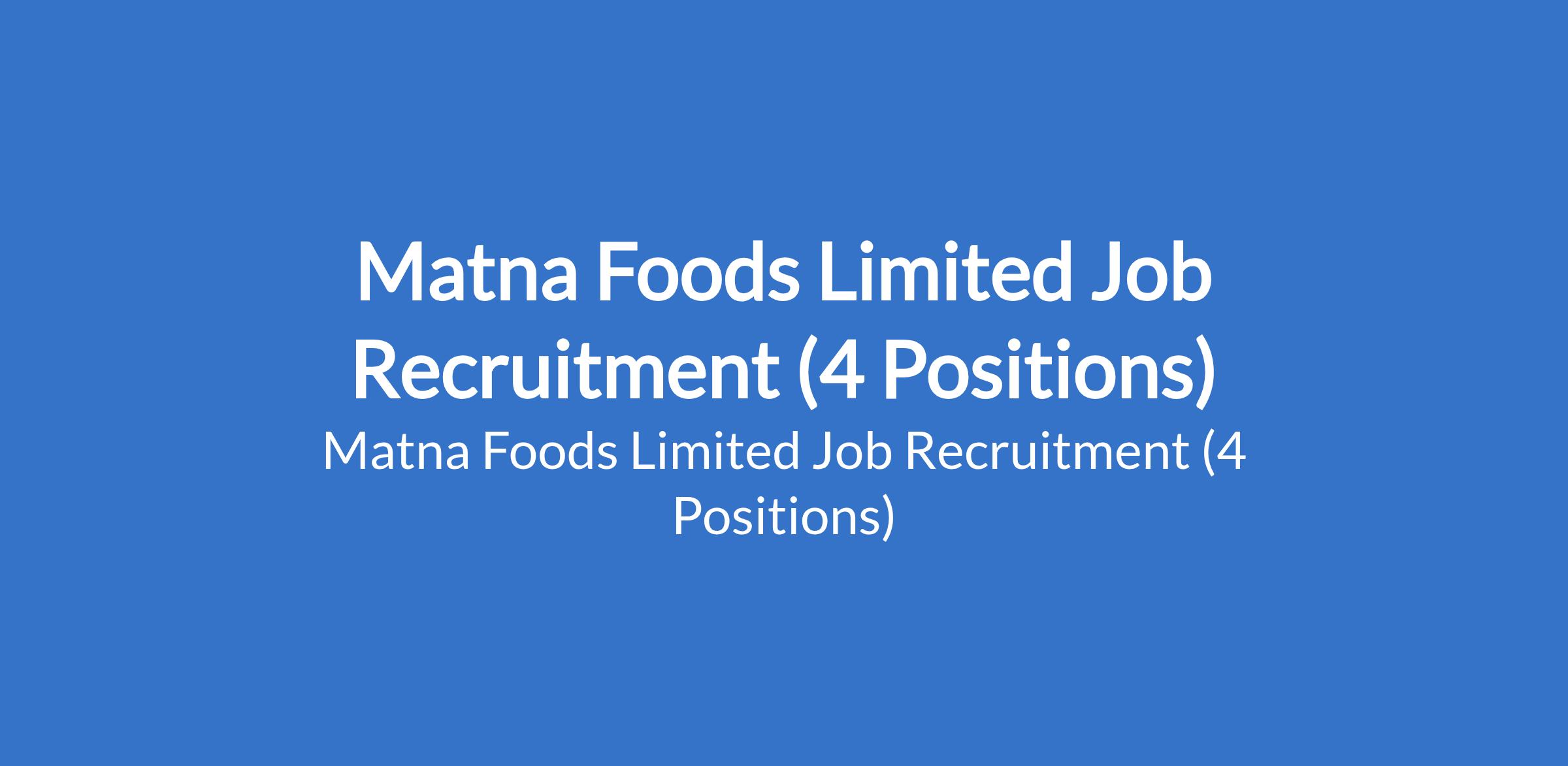Matna Foods Limited Job Recruitment (4 Positions)