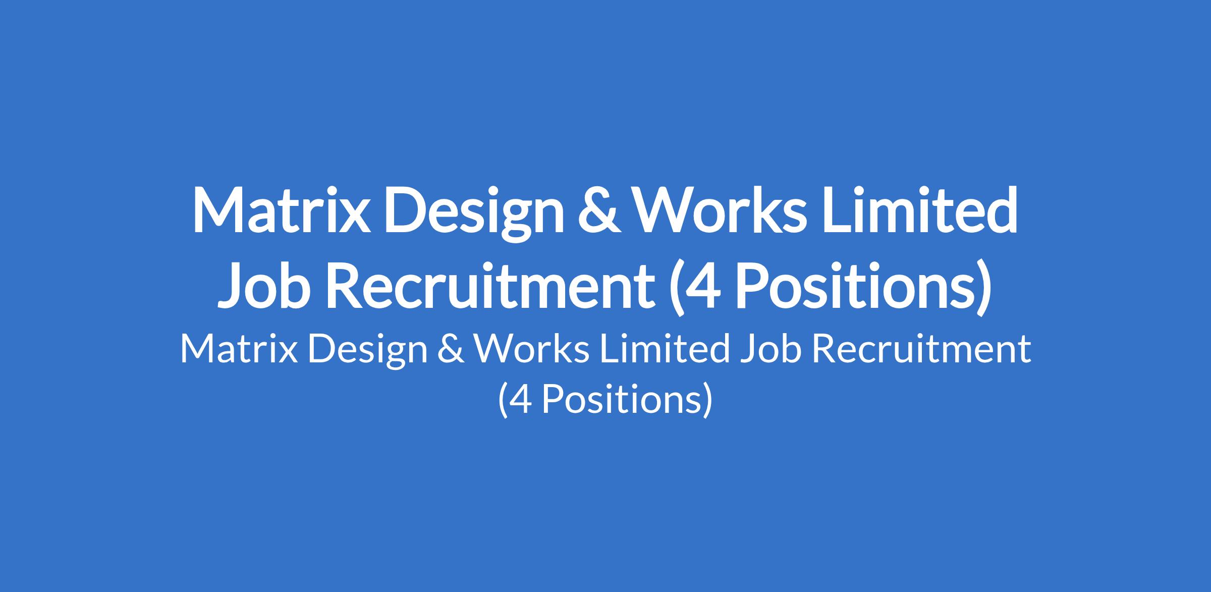 Matrix Design & Works Limited Job Recruitment (4 Positions)