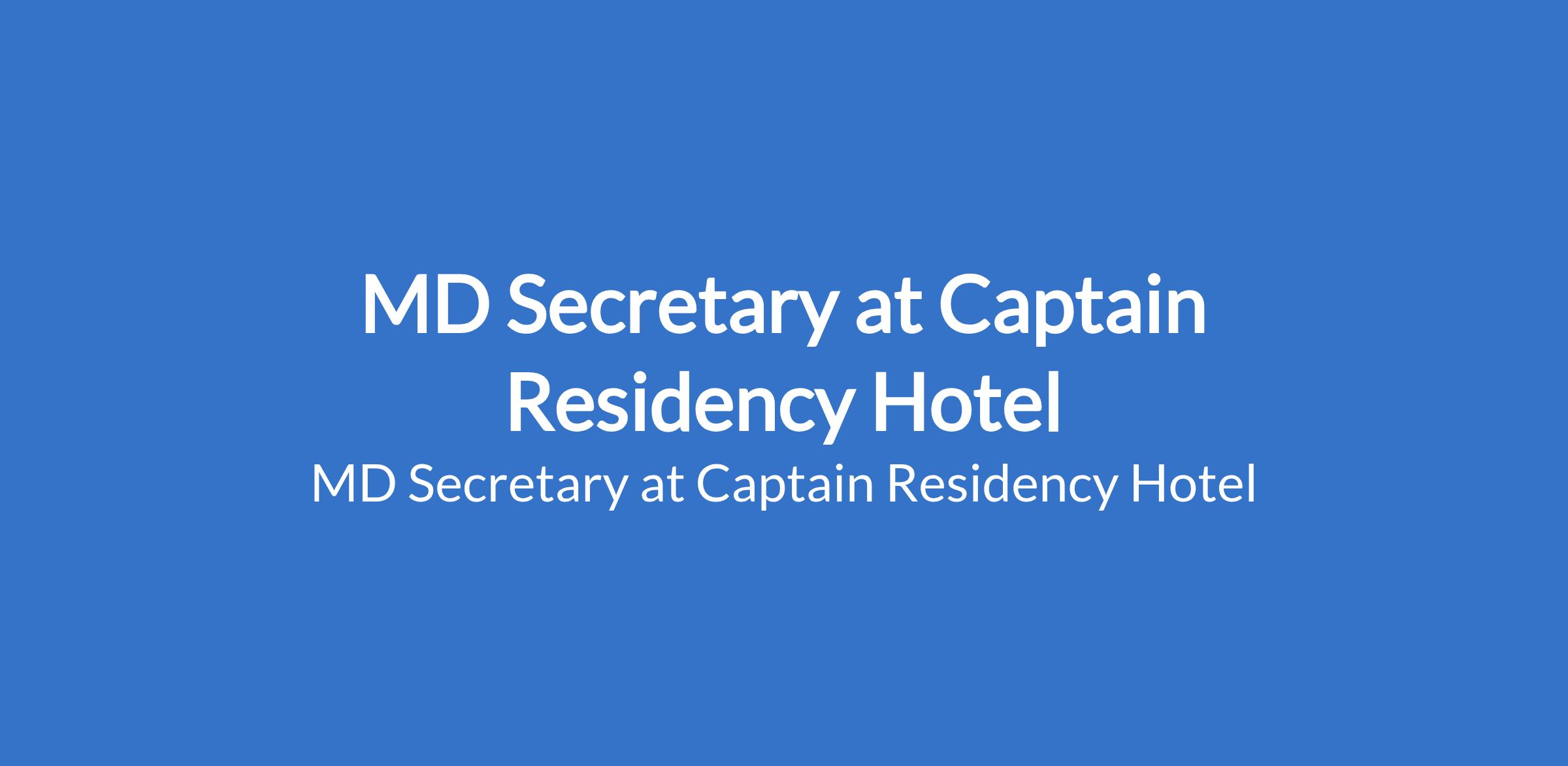 Captain Residency Hotel is recruiting to fill the position of: MD Secretary. The position is located in Sabo - Yaba, Lagos State. Salary: N100,000 - N120,000 monthly. Interested candidates should possess an HND / B.Sc in Secretarial Studies / Management with 1- 5 years of work experience must be able to use Microsoft office packages and not more than 35 years of age.