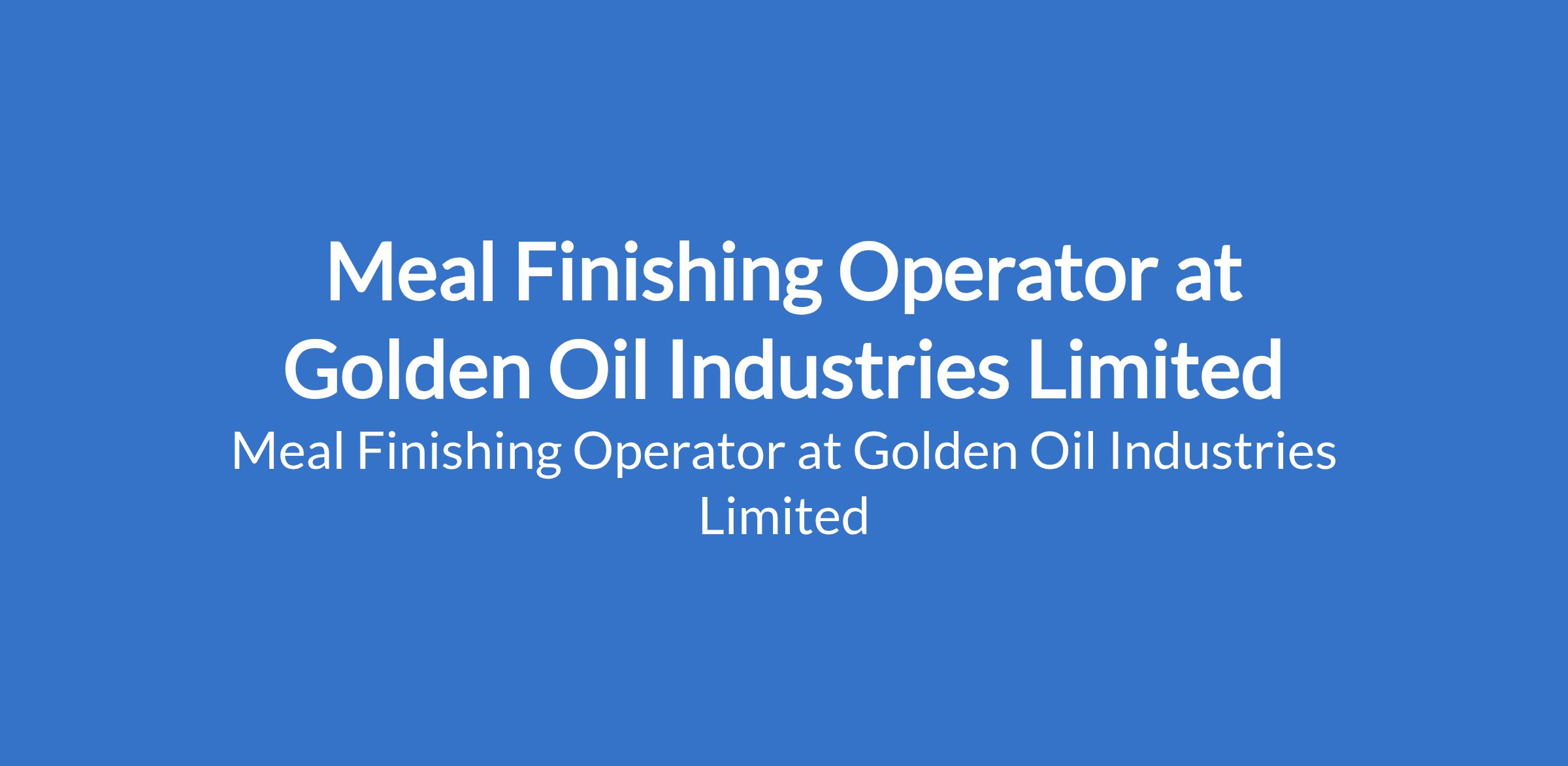 Meal Finishing Operator at Golden Oil Industries Limited