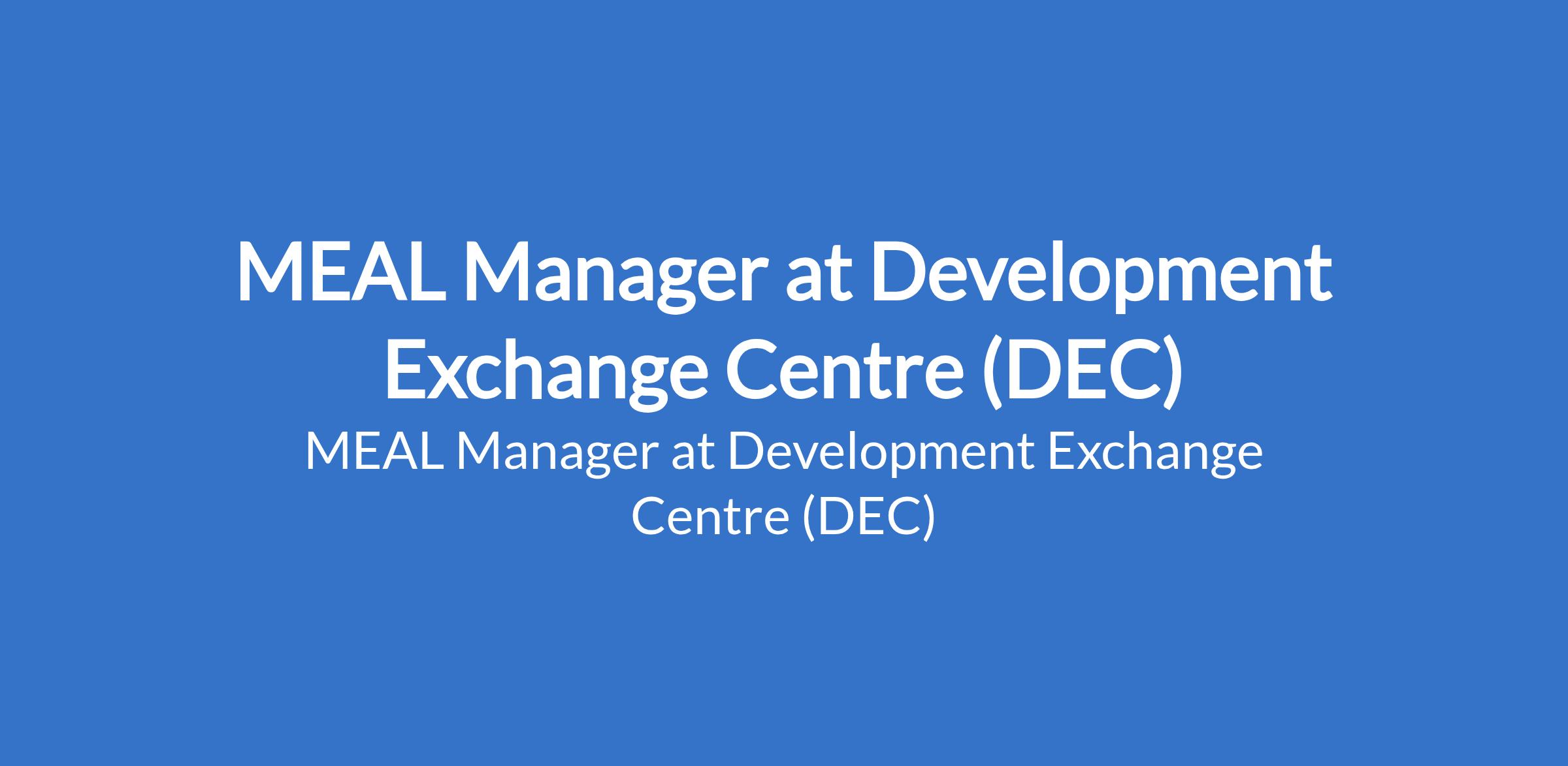 Development Exchange Centre (DEC) is recruiting to fill the position of: MEAL Manager. The position is located in Bauchi State. Interested candidates should possess relevant qualifications and experience.