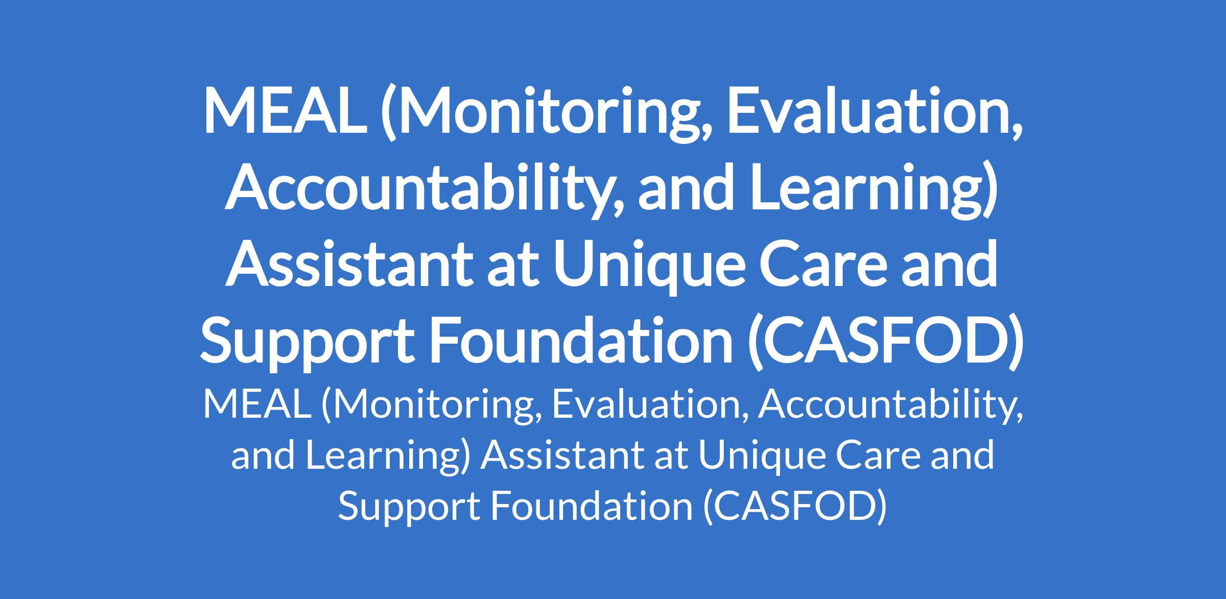 Unique Care and Support Foundation (CASFOD) is recruiting to fill the position of: MEAL (Monitoring, Evaluation, Accountability, and Learning) Assistant. The position is located in Maiduguri, Borno State. Interested candidates should possess a Bachelors Degree in Statistics, Social Sciences, Economics or a related fields with 12 years relevant experience in monitoring, evaluation, or data management preferably with an NGO or humanitarian organization.