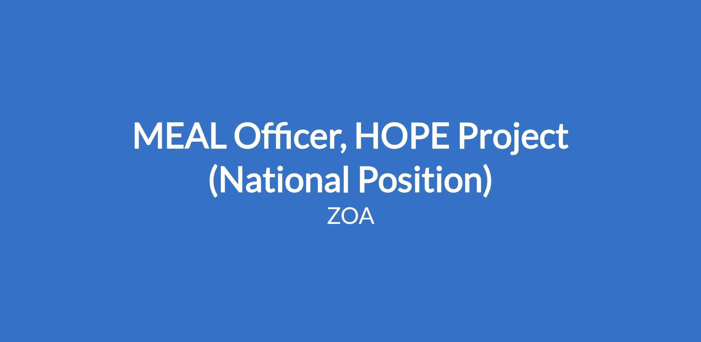 - The MEAL Officer acts as the main contact person for the MEAL related support in the HOPE project