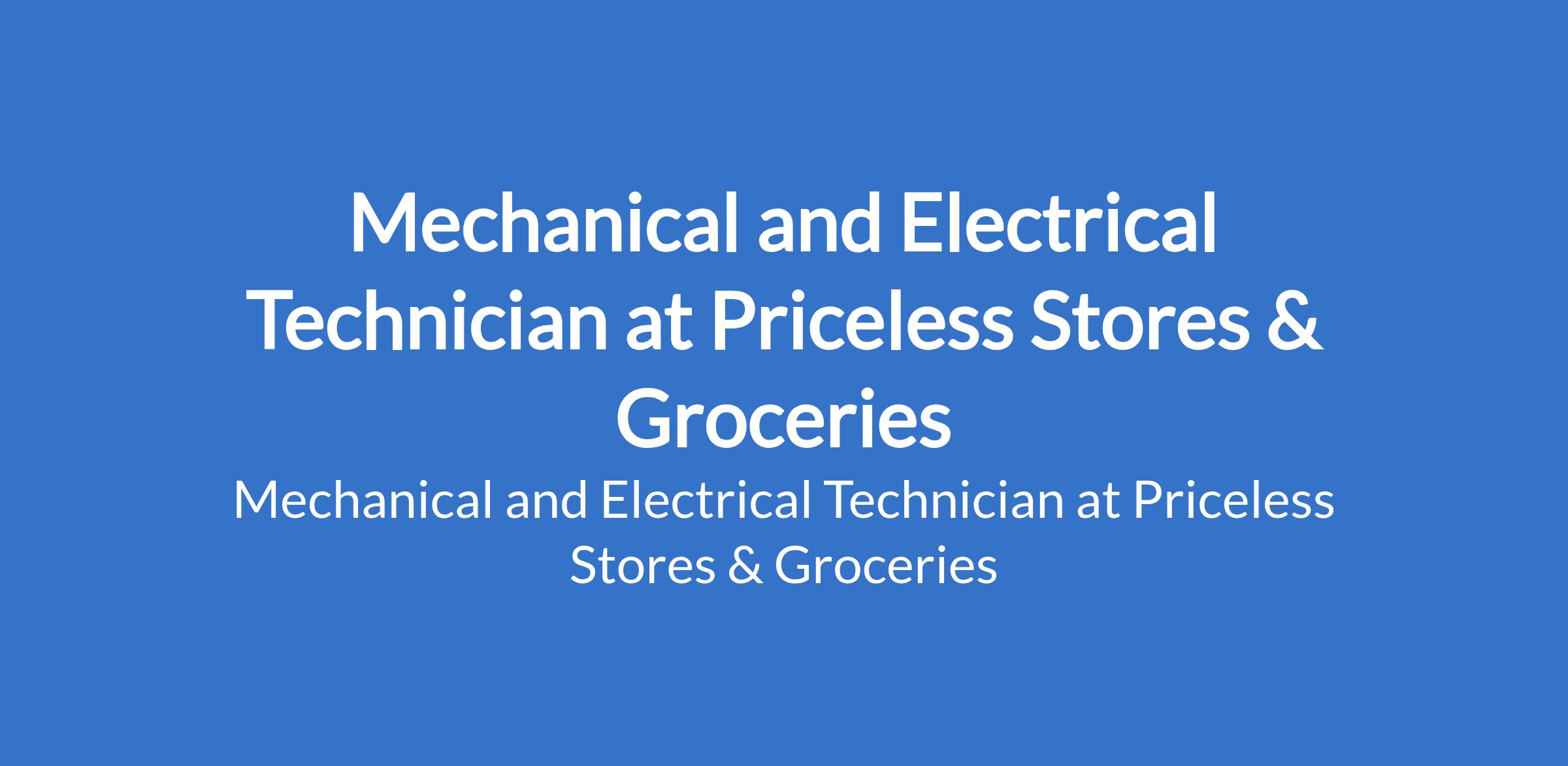 Mechanical and Electrical Technician at Priceless Stores & Groceries