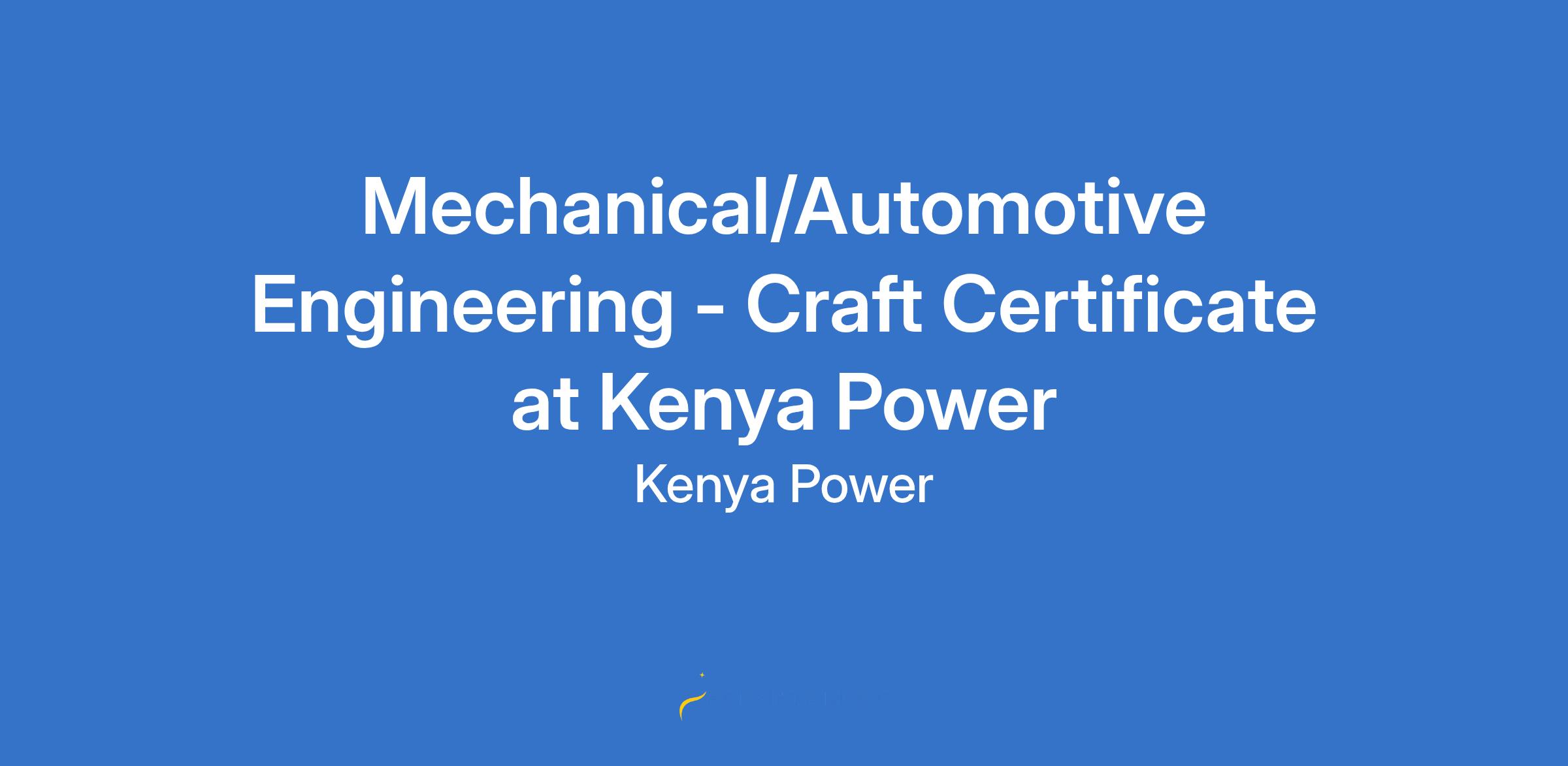 Mechanical/Automotive Engineering - Craft Certificate at Kenya Power