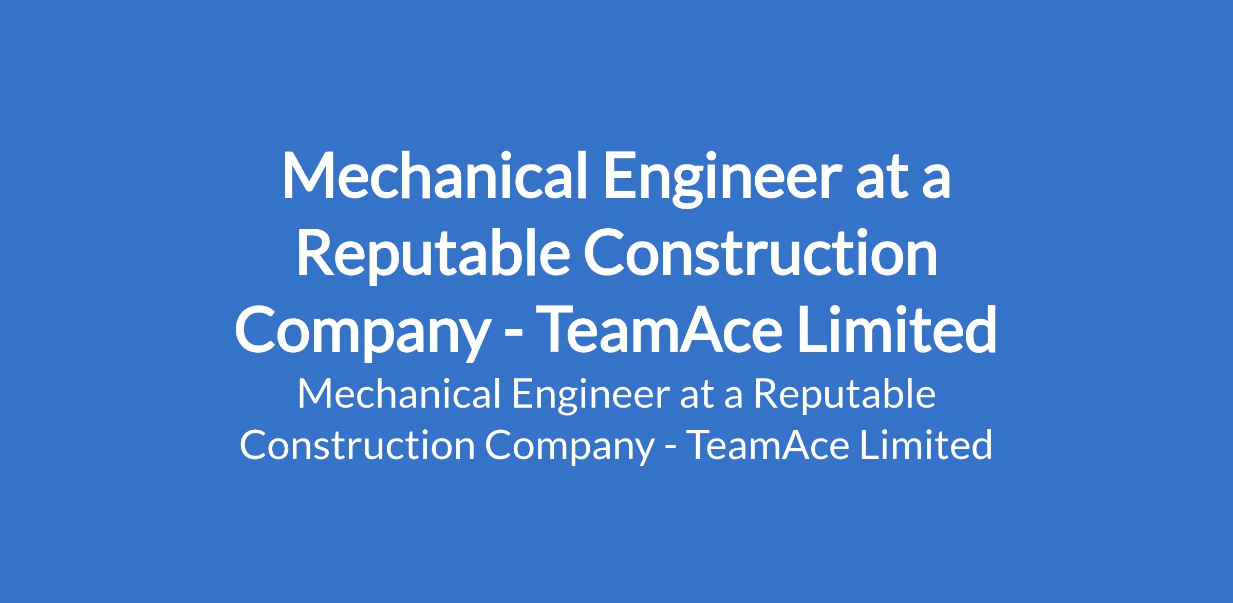 TeamAce Limited - Our client, a reputable organization in the Construction sector is recruiting to fill the position of: Mechanical Engineer. The position is located in Ikoyi, Lagos State. Interested candidates should possess a Bachelors Degree in Mechanical Engineering or related fields with a minimum of 3 years experience in mechanical engineering within the construction sector.