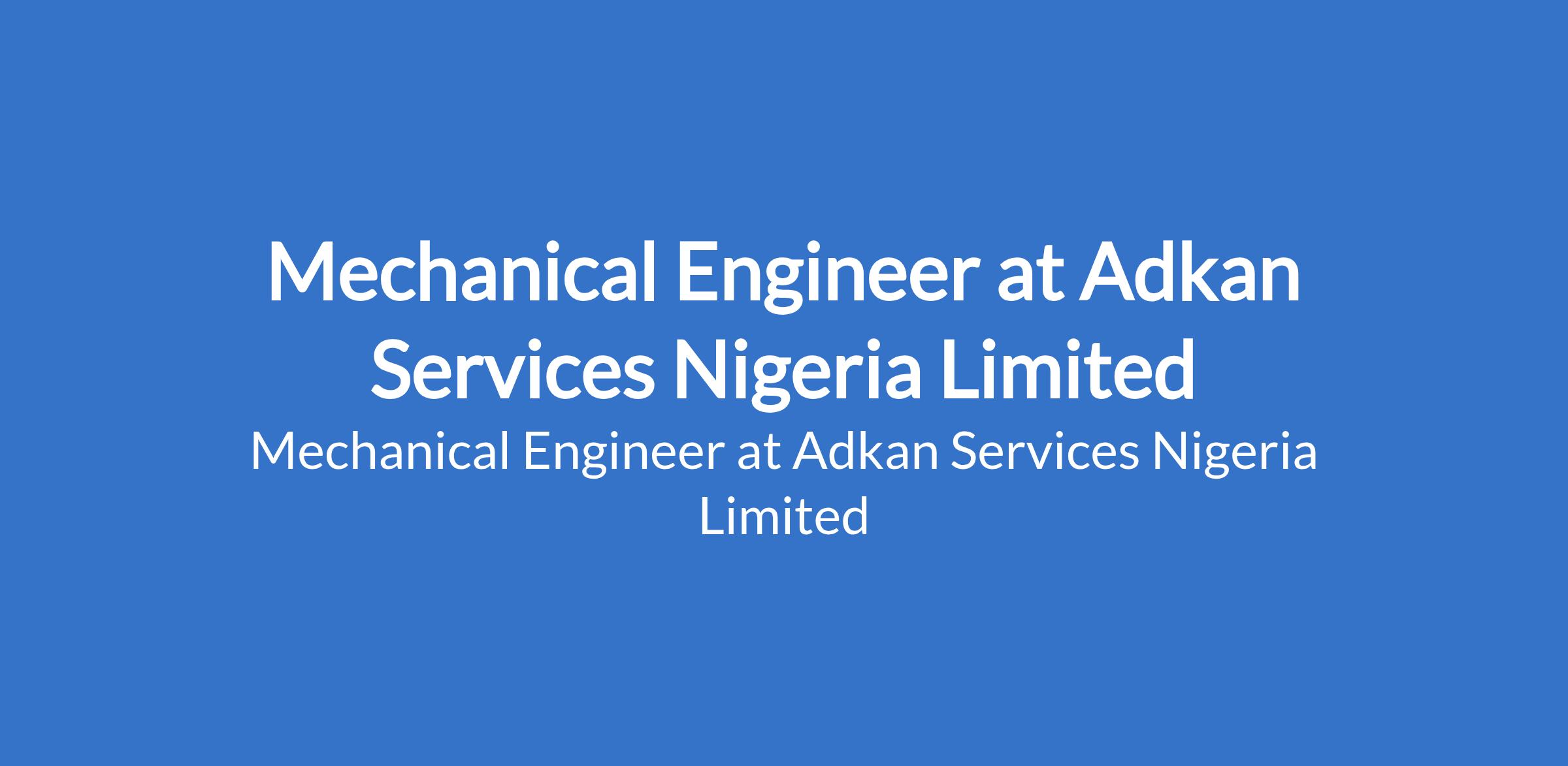 Adkan Services Nigeria Limited is recruiting to fill the position of: Mechanical Engineer. The position is located in Abuja (FCT). Interested candidates should possess a Bachelors Degree or HND in Mechanical Engineering or a related discipline with 35 years of experience in mechanical engineering, preferably in the construction or manufacturing industry.