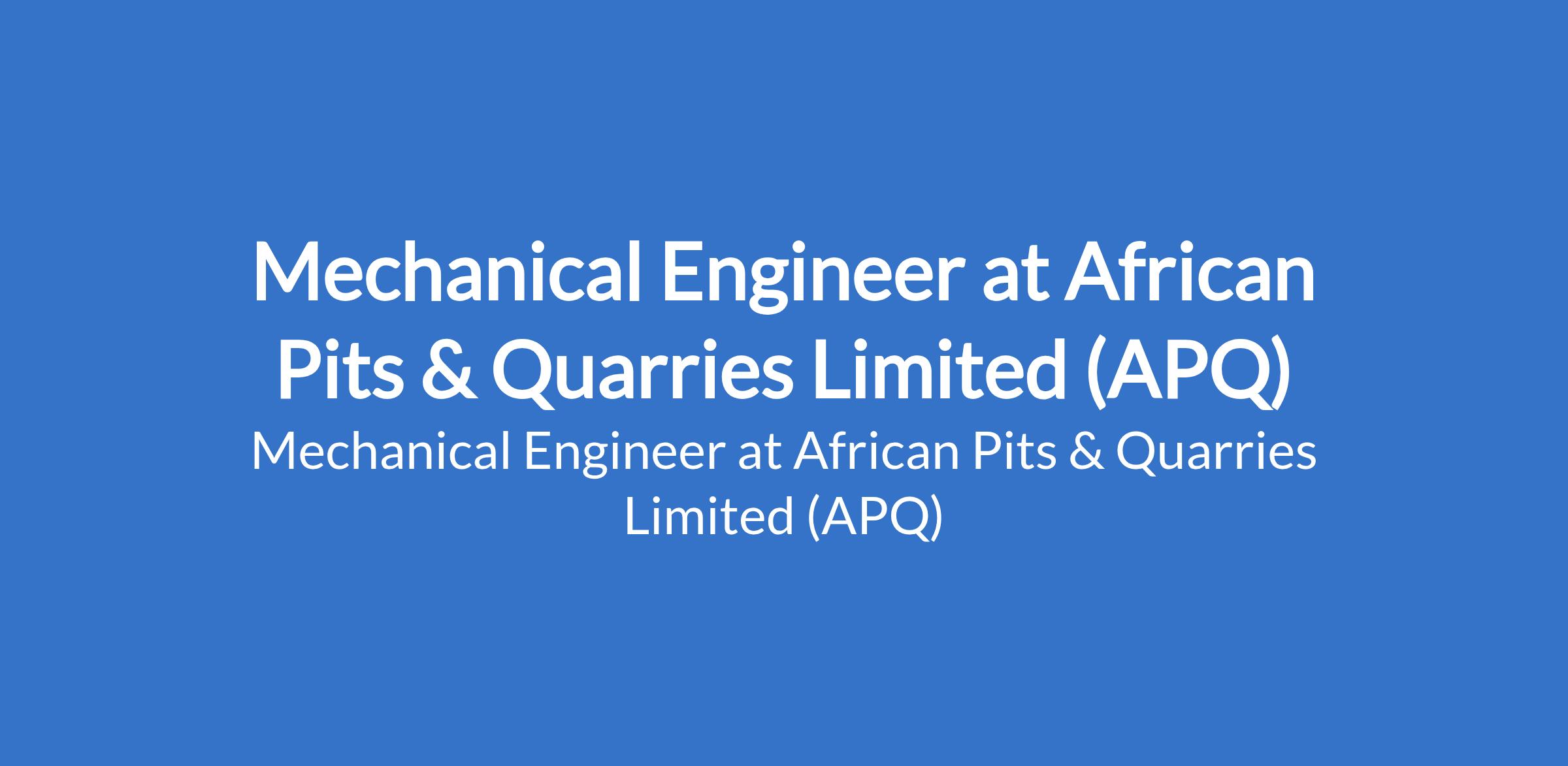 Mechanical Engineer at African Pits & Quarries Limited (APQ)