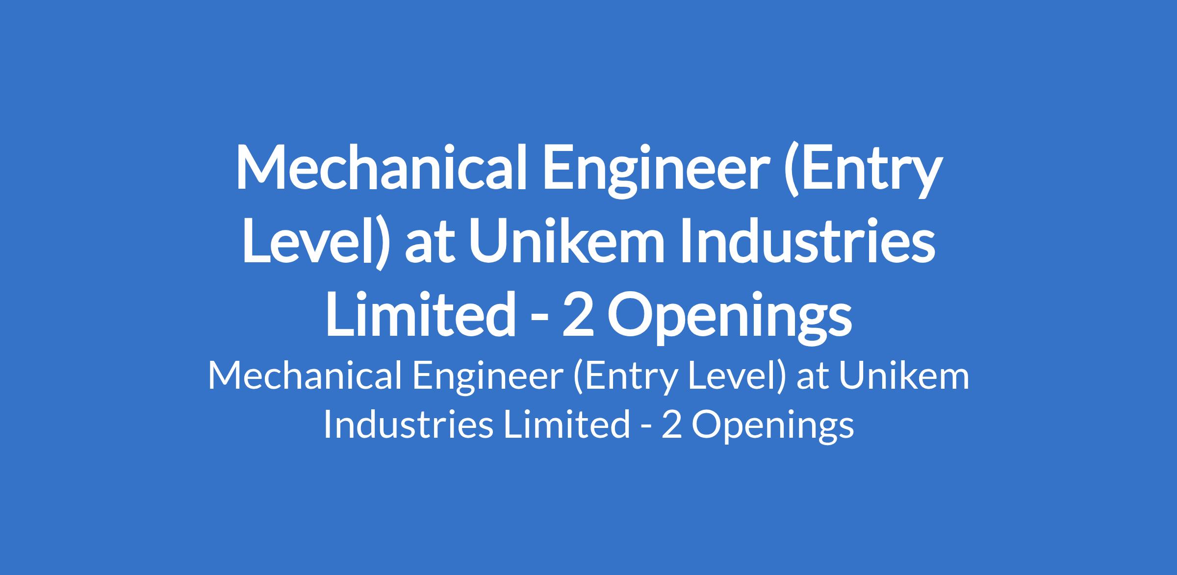 Mechanical Engineer (Entry Level) at Unikem Industries Limited - 2 Openings