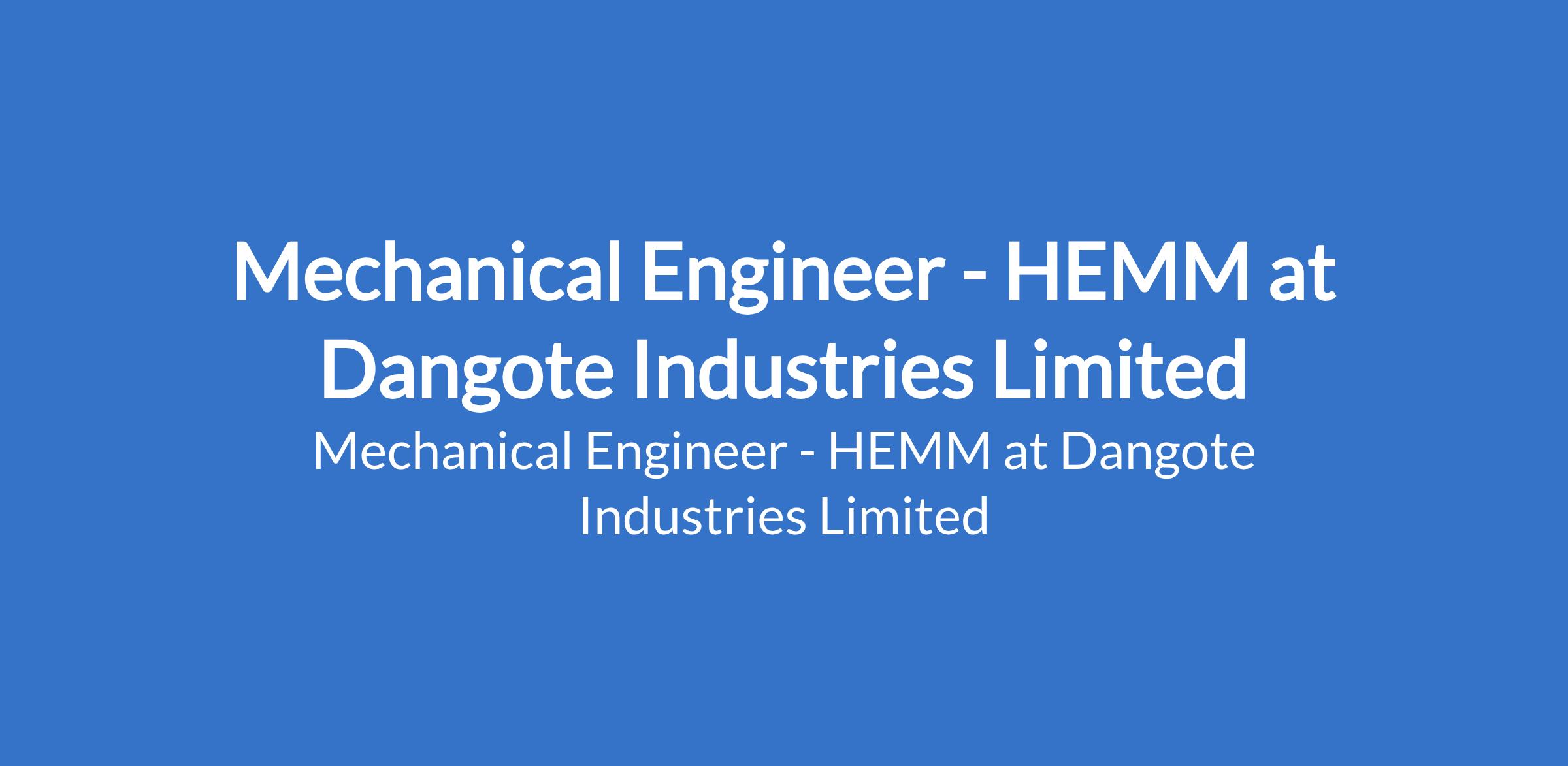 Dangote Industries Limited is recruiting to fill the position of: Mechanical Engineer - HEMM. The position is located in Ibese Plant, Ogun State. Interested candidates should possess a Bachelor's Degree or HND qualification in Mechanical Engineering or a related field with proven experience as a Mechanical Engineer or in a similar role.