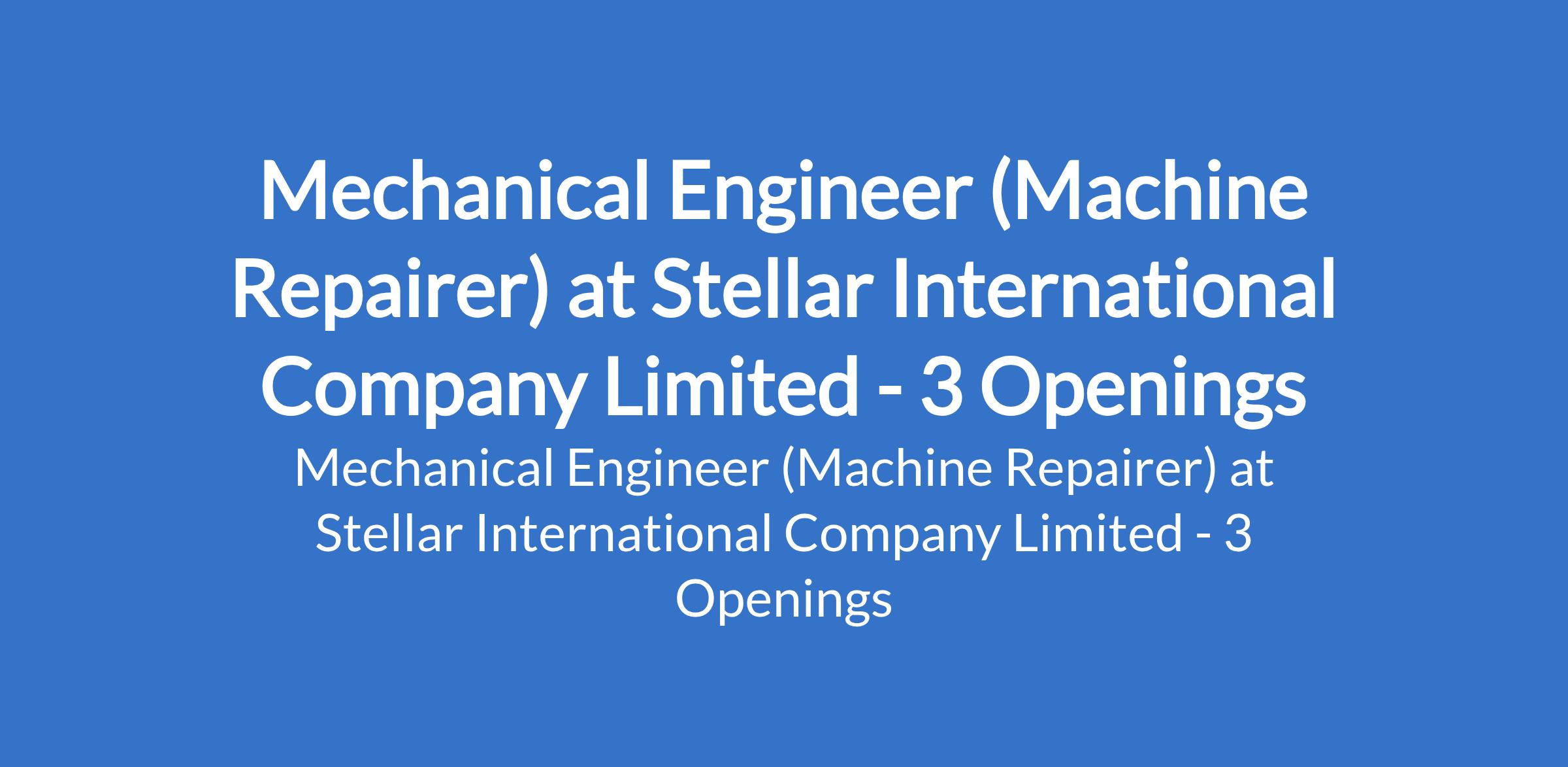 Stellar International Company Limited is recruiting to fill the position of: Mechanical Engineer (Machine Repairer). The position is located in Idu - Abuja (FCT), Sharada - Kano, and Lagos States. Interested candidates should possess an OND or HND qualification with 1 - 3 years of experience (more than 1 year of welding experience), and should be 20 - 35 years old.